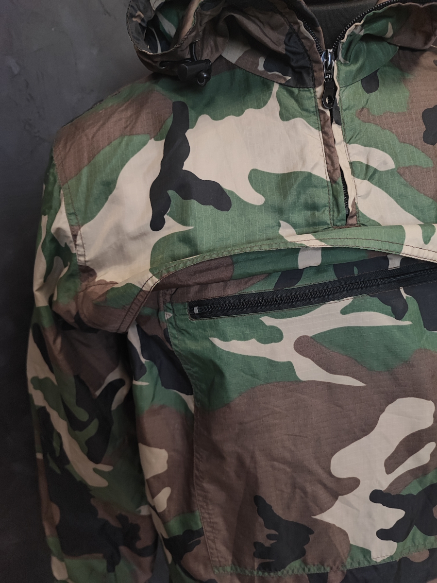 Анорак камуфляжный их непромокаемого нейлона с большим карманом на груди.