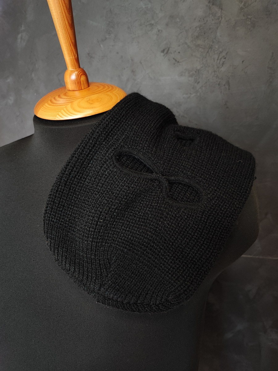 Балаклава зимняя в черном цвете с прорезью для глаз рта.