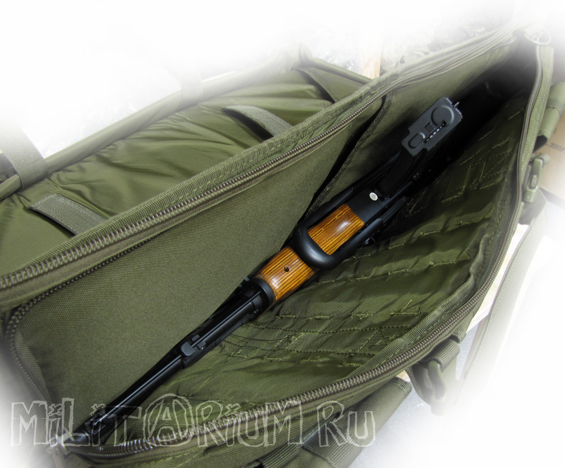 - Второе отделение (65 см/26") имеет 2 встроенных защищенных кармана для пистолета, оптики и др.