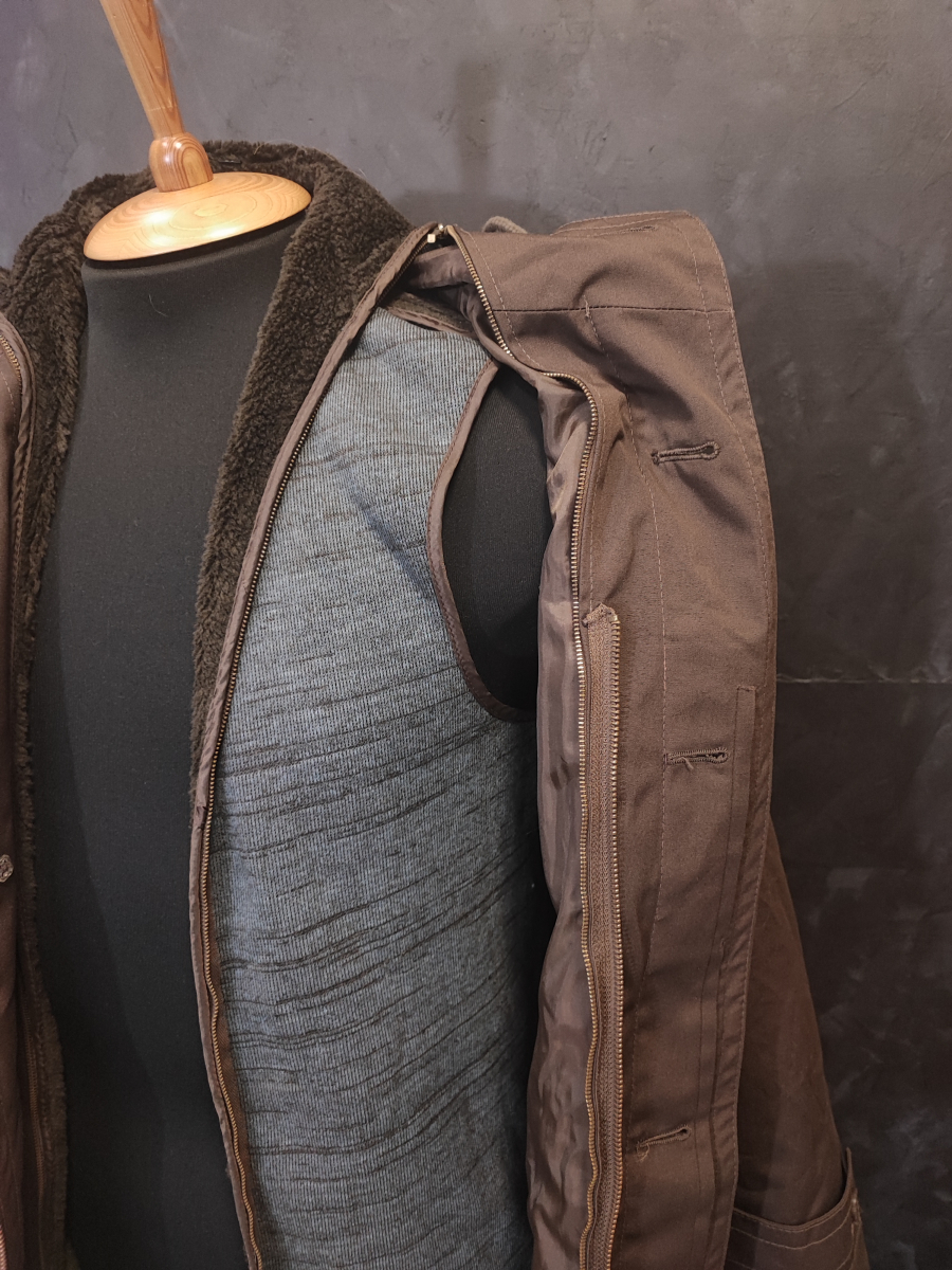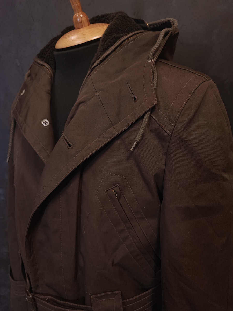 Винтажный плащ с теплой съемной подстежкой из шерпы.