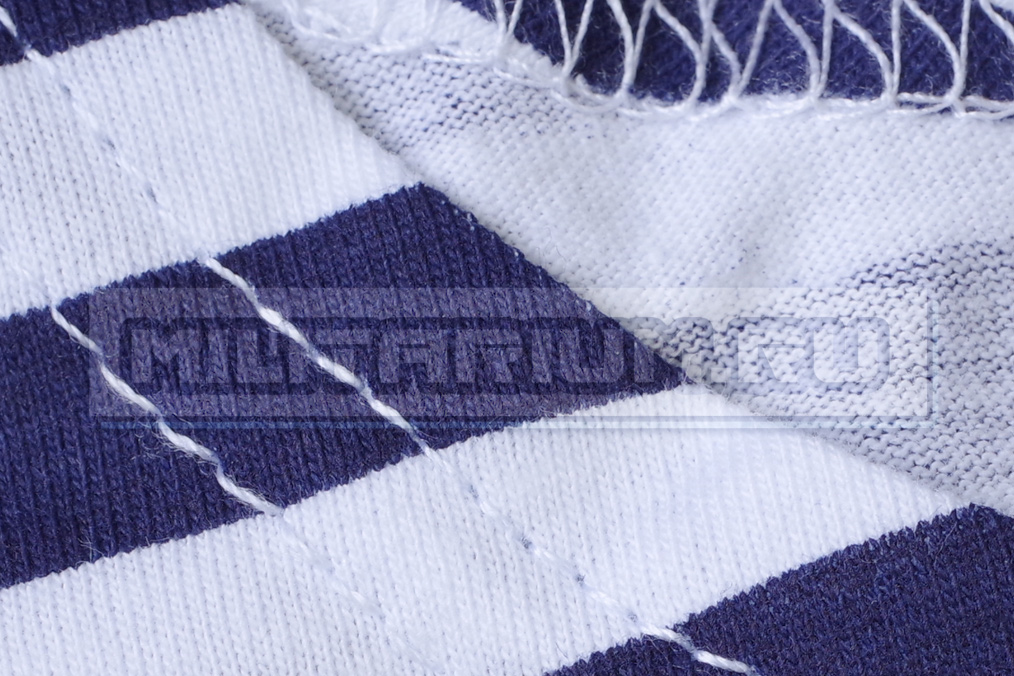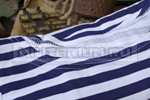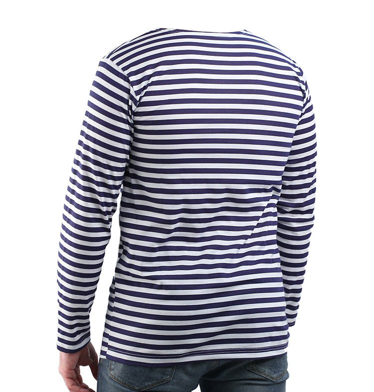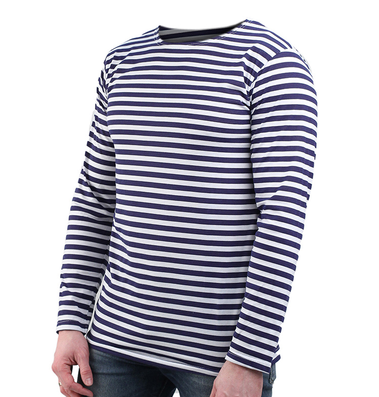 Летняя тельняшка-флотская нательная фуфайка с длинными рукавами и темно-синими полосками.