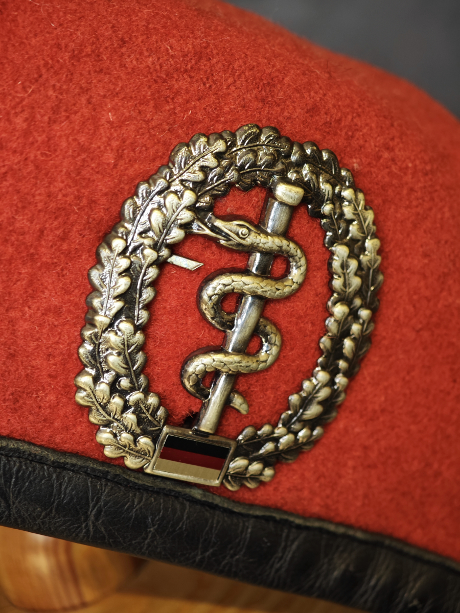 Красный берет Bundeswehr Sanitätstruppe для отдельных полевых подразделений санитарной службы.
