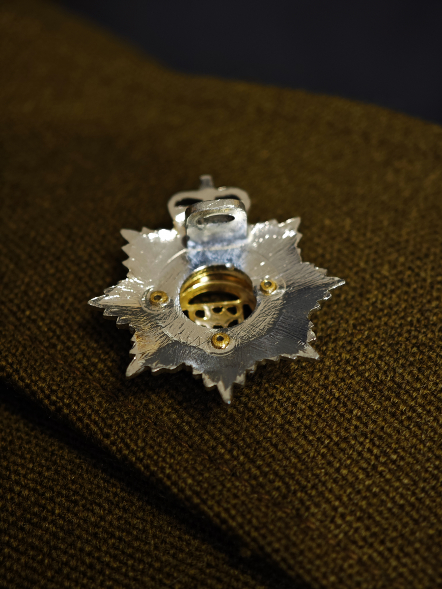 В центре знака расположен медальон с вензелем правящей королевы Елизаветы II (EIIR), что указывает на хронологический период его ношения.