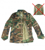 Зимний жилет Милтек в камуфляже вудленд с дефектом молнии и отсутствием верхней фронтальной кнопки. подробнее