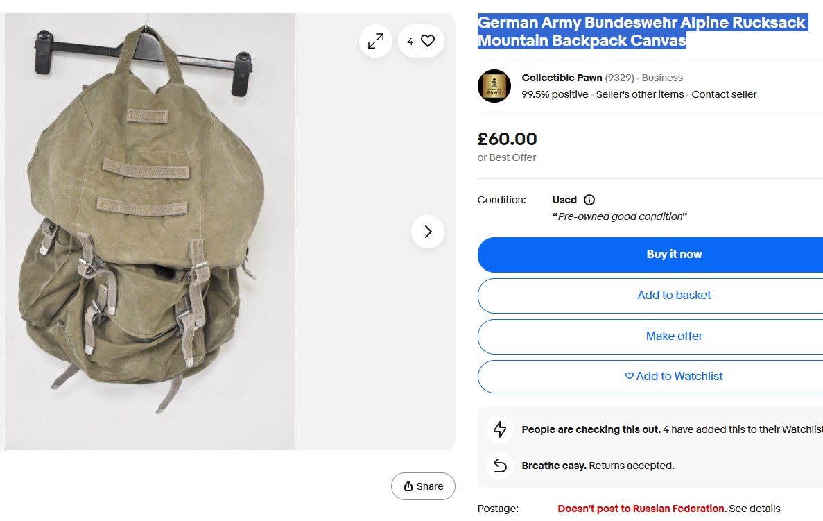 Дополнительно разместили скрины с ебея для понимания сколько они стоят без рамы/лямок на ebay.