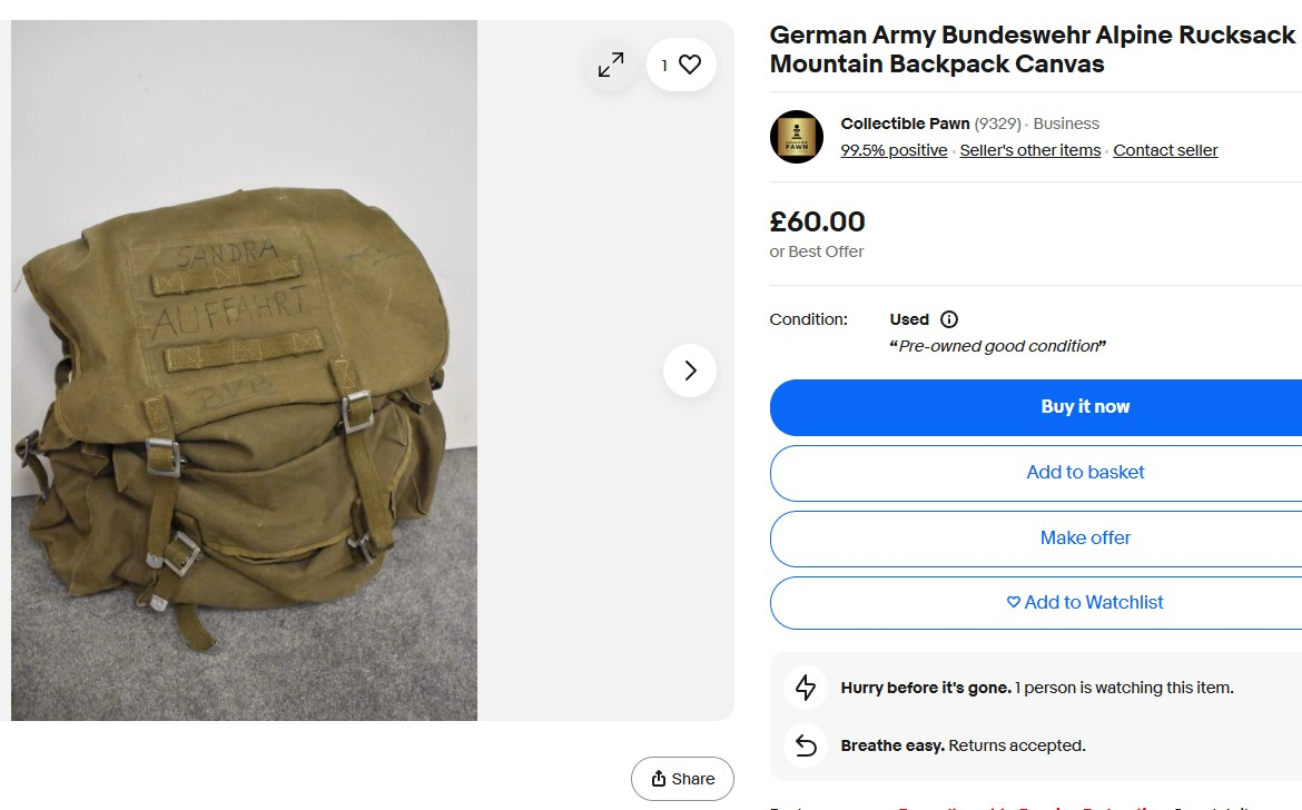 Существует много реплик этого рюкзака. Мы предлагаем немецкий ОРИГИНАЛ (с армейских складов).
