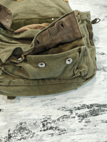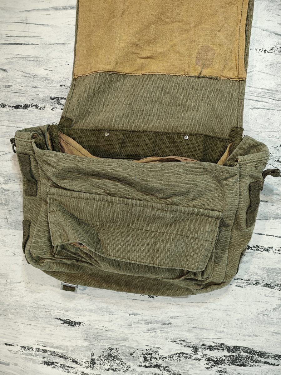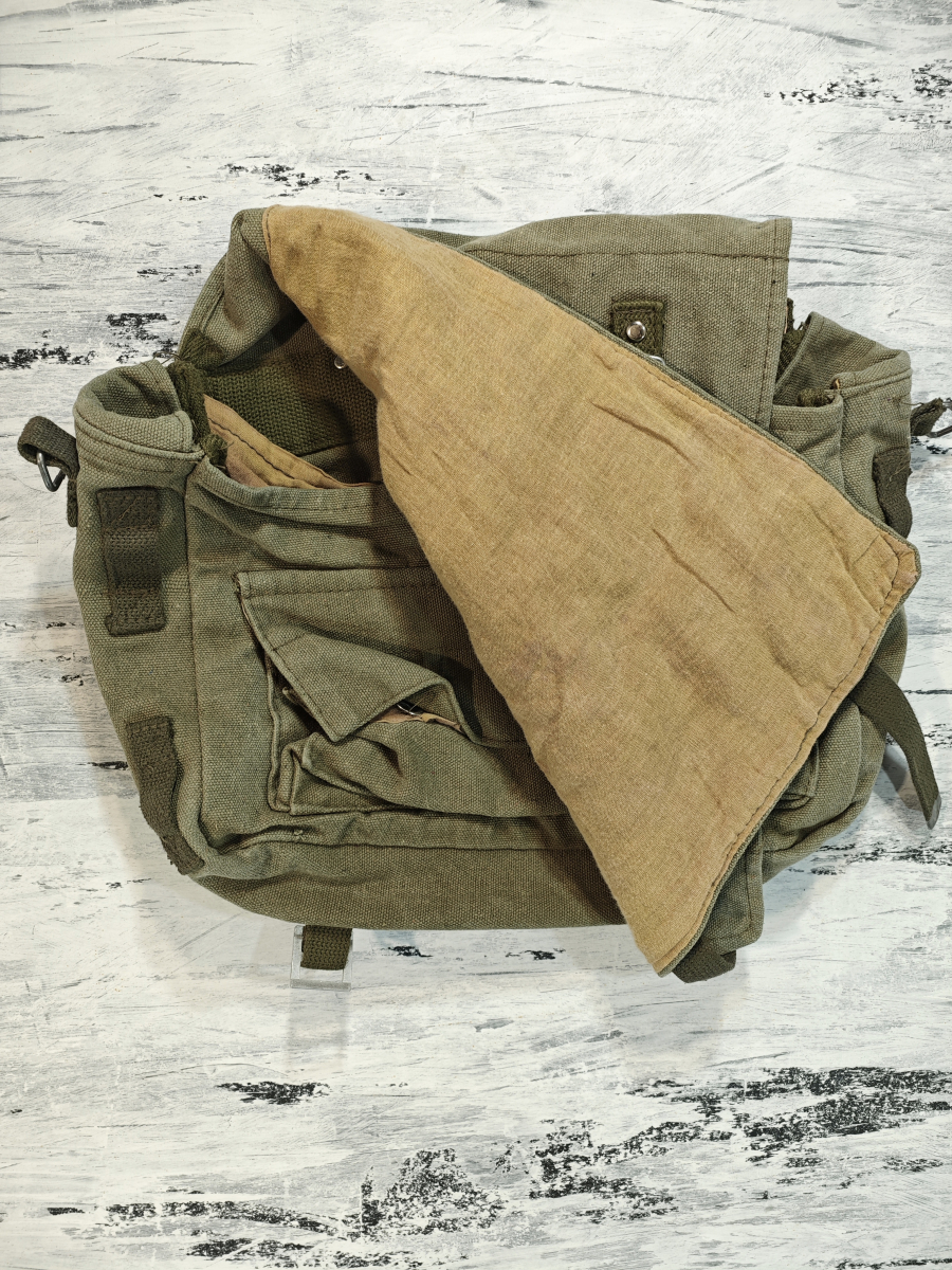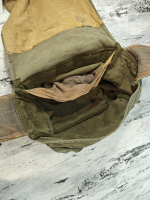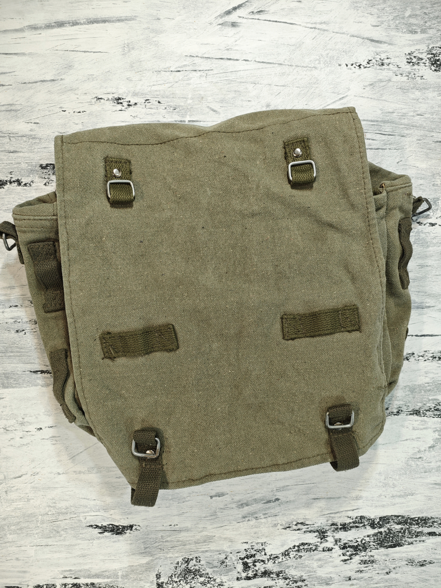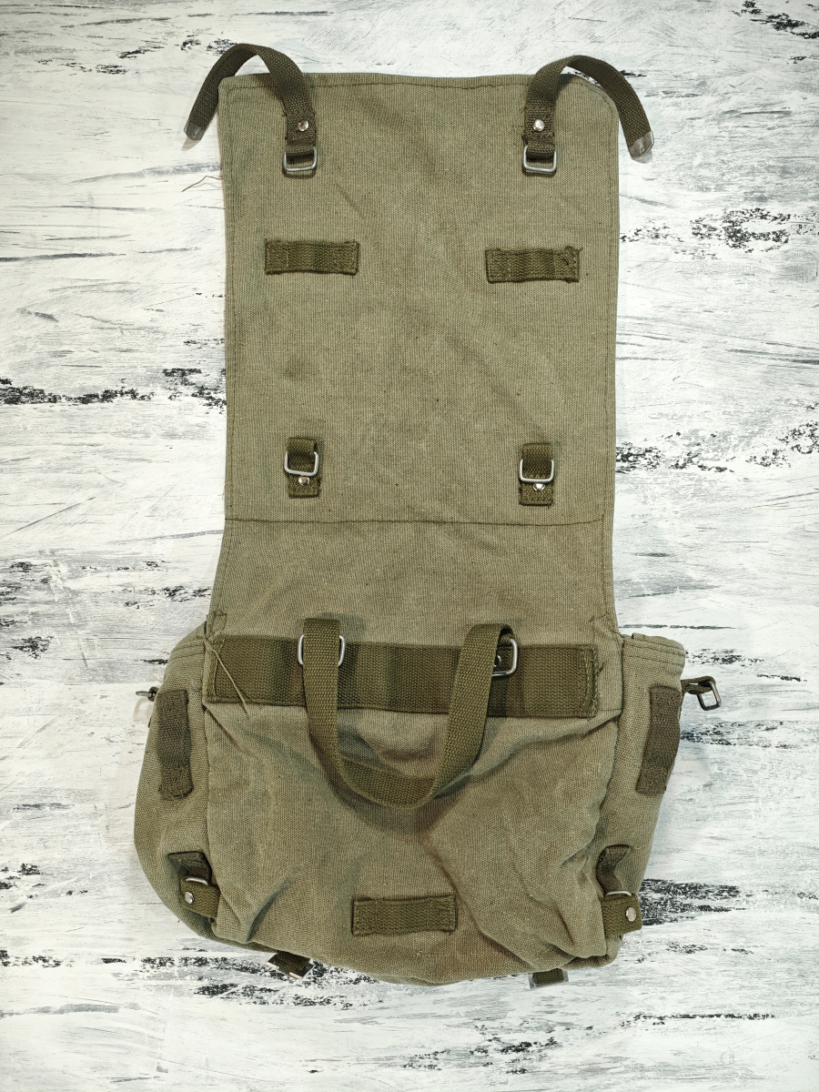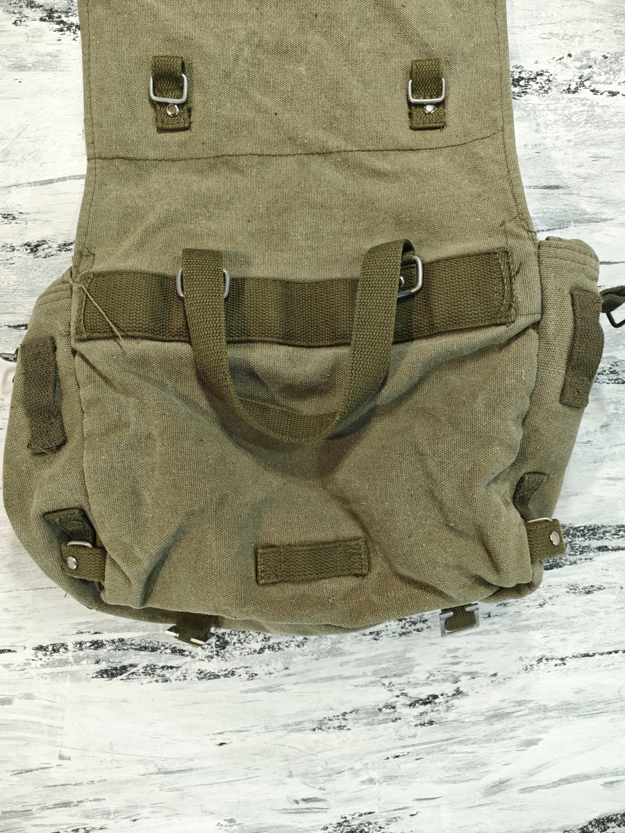 Сумка похожа на оригинальную винтажная военную сумку Западной Германии, использовавшуюся с 1960-х по 1980-е годы. Эти сумки из 100% хлопчатобумажного полотна использовались в качестве хозяйственных сумок для переноски боеприпасов, пайков и небольших припасов. Они крепятся к полевым подтяжкам и превращаются в небольшой рюкзак. Они отлично подходят для повседневного ношения необходимых вещей. Эту универсальную сумку можно носить на спине или через плечо (ремни в комплект не входят).
