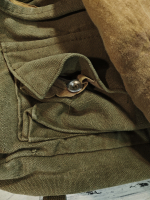Сухарка интересная ...никаких клейм нет...хорошо сшитая ...чистая комерция.Брезент мягкий и приятный на ощупь...пару литровых фляжек и сухпай уместится...есть карманчик для ложки и вилки.Для погулять недалеко вполне сойдет.
