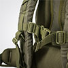- К задней стенке рюкзака прикреплены плечевые ремни с амортизирующими накладками и расположенными на них петлями для крепления экипировки и нагрудным стяжным ремнем с замками-защелками.