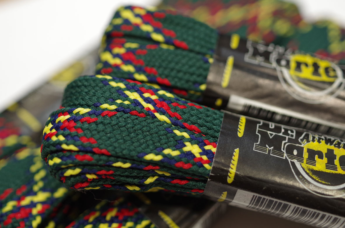 Оригинальные шнурки от Мартенса - плоские, зеленые с контрастным плетением, ширина 10мм.