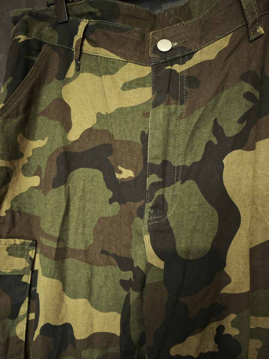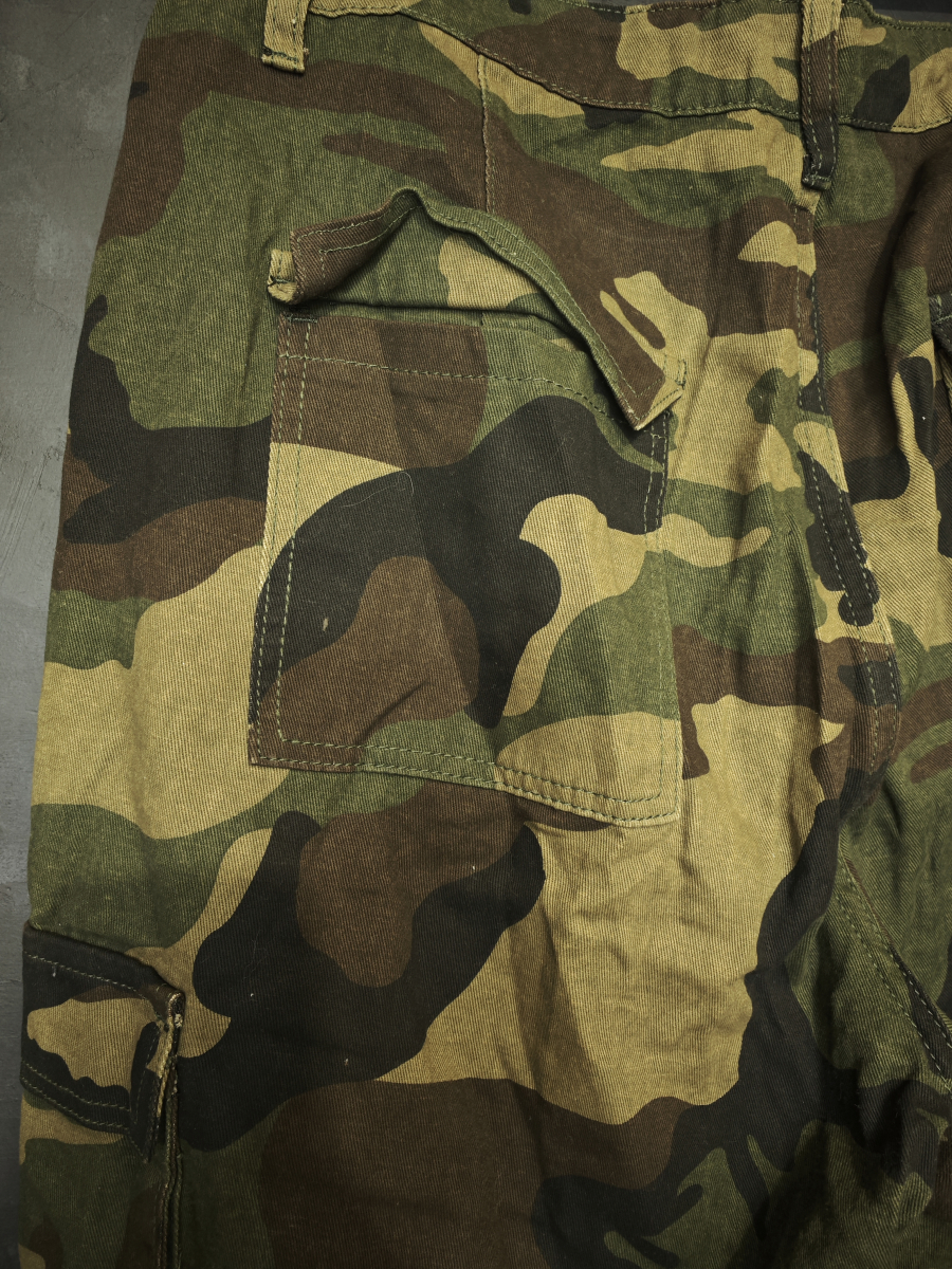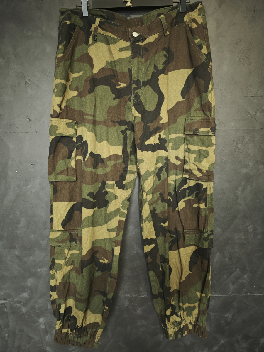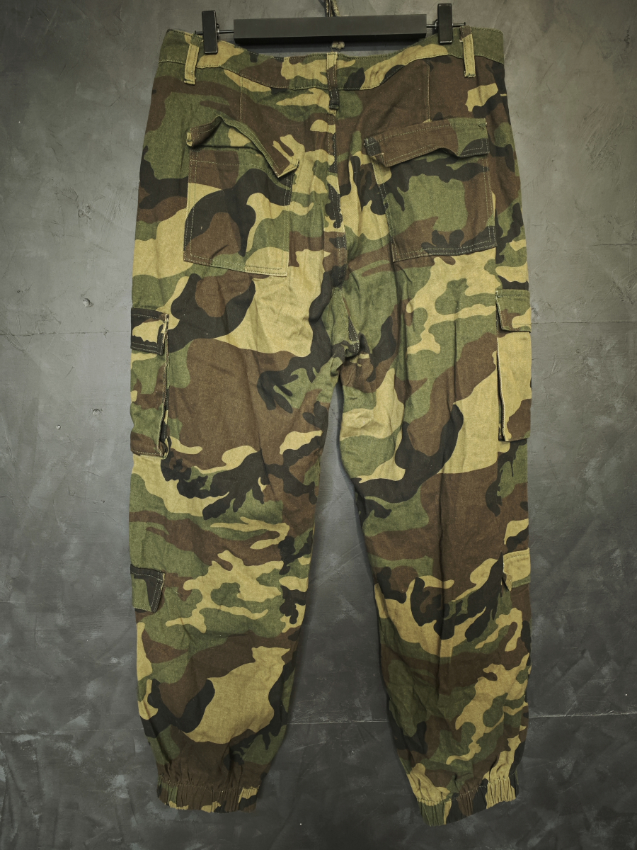 Удобные камуфляжные брюки с резинкой на штанинах вокруг щиколотки.