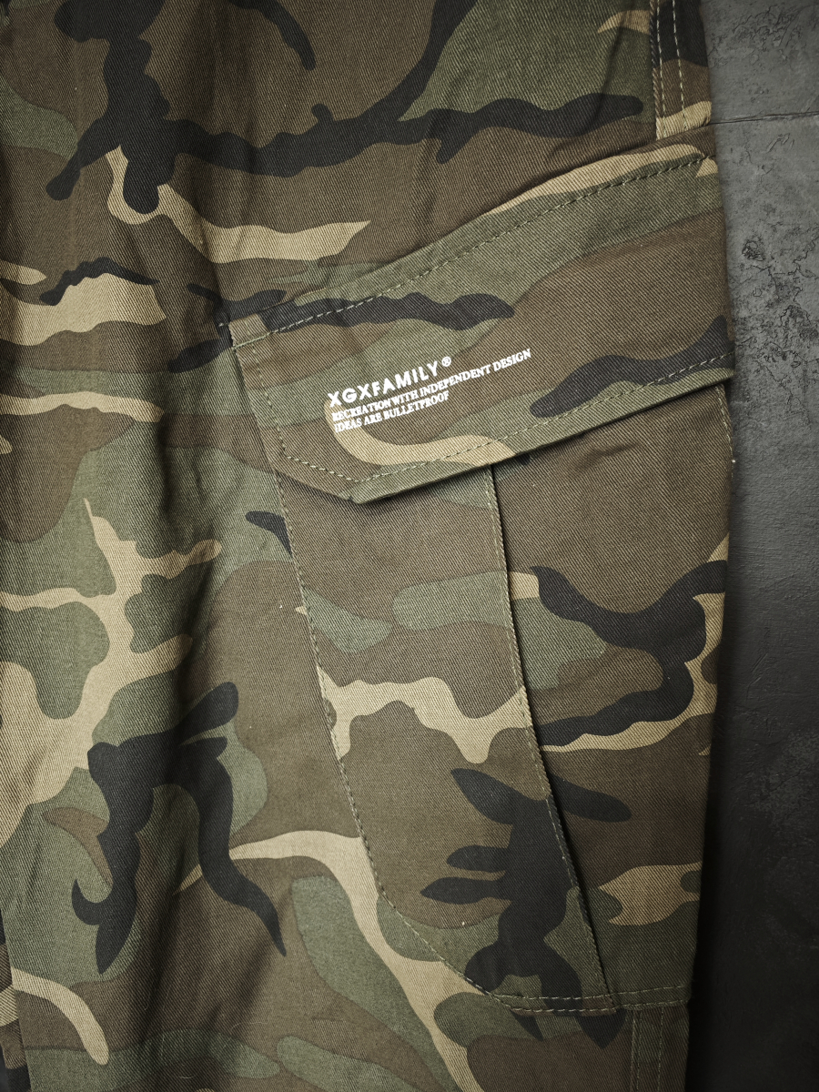 Брюки джоггеры XGXFAMILY в лесном камуфляже вудланд.
