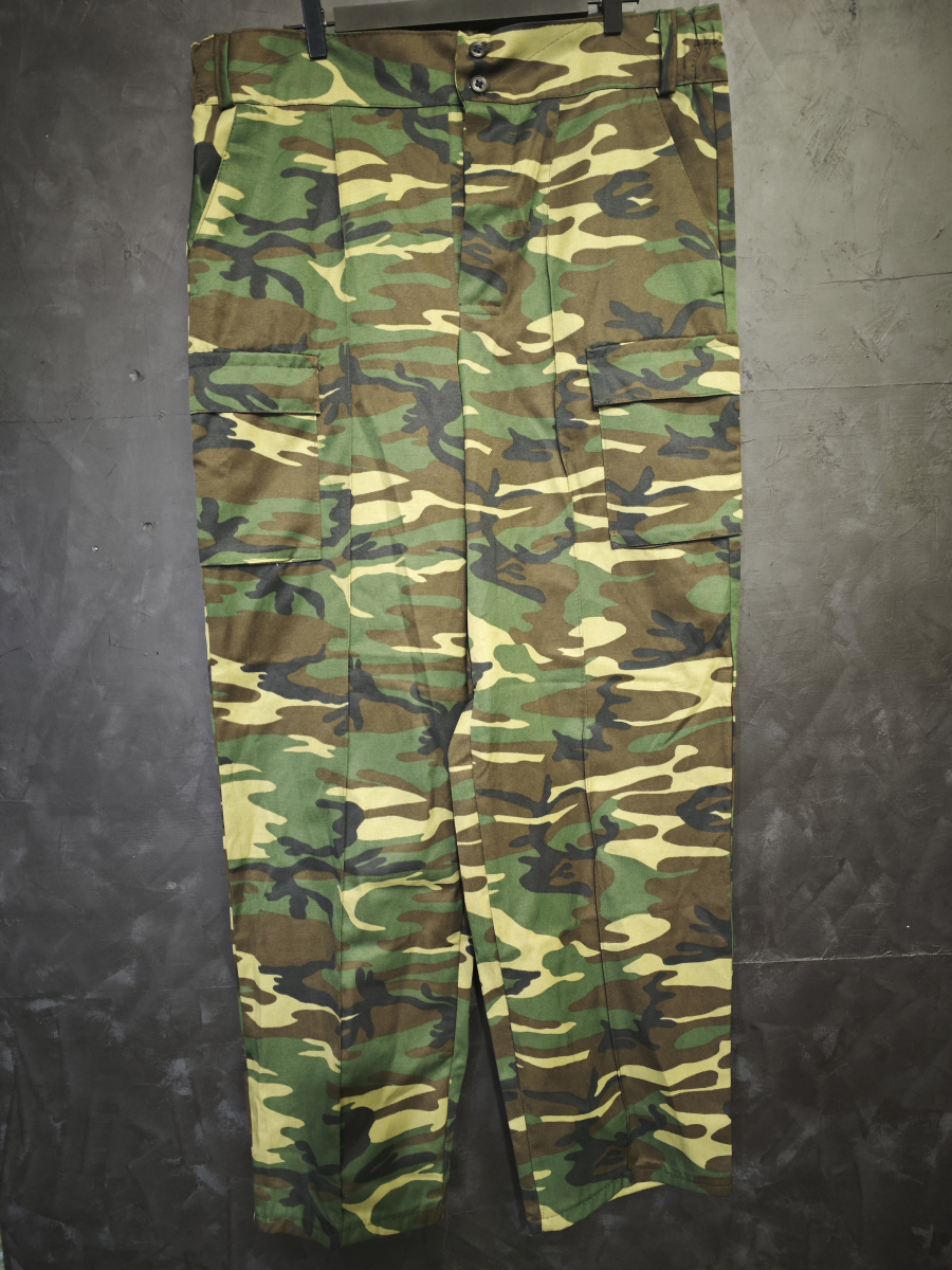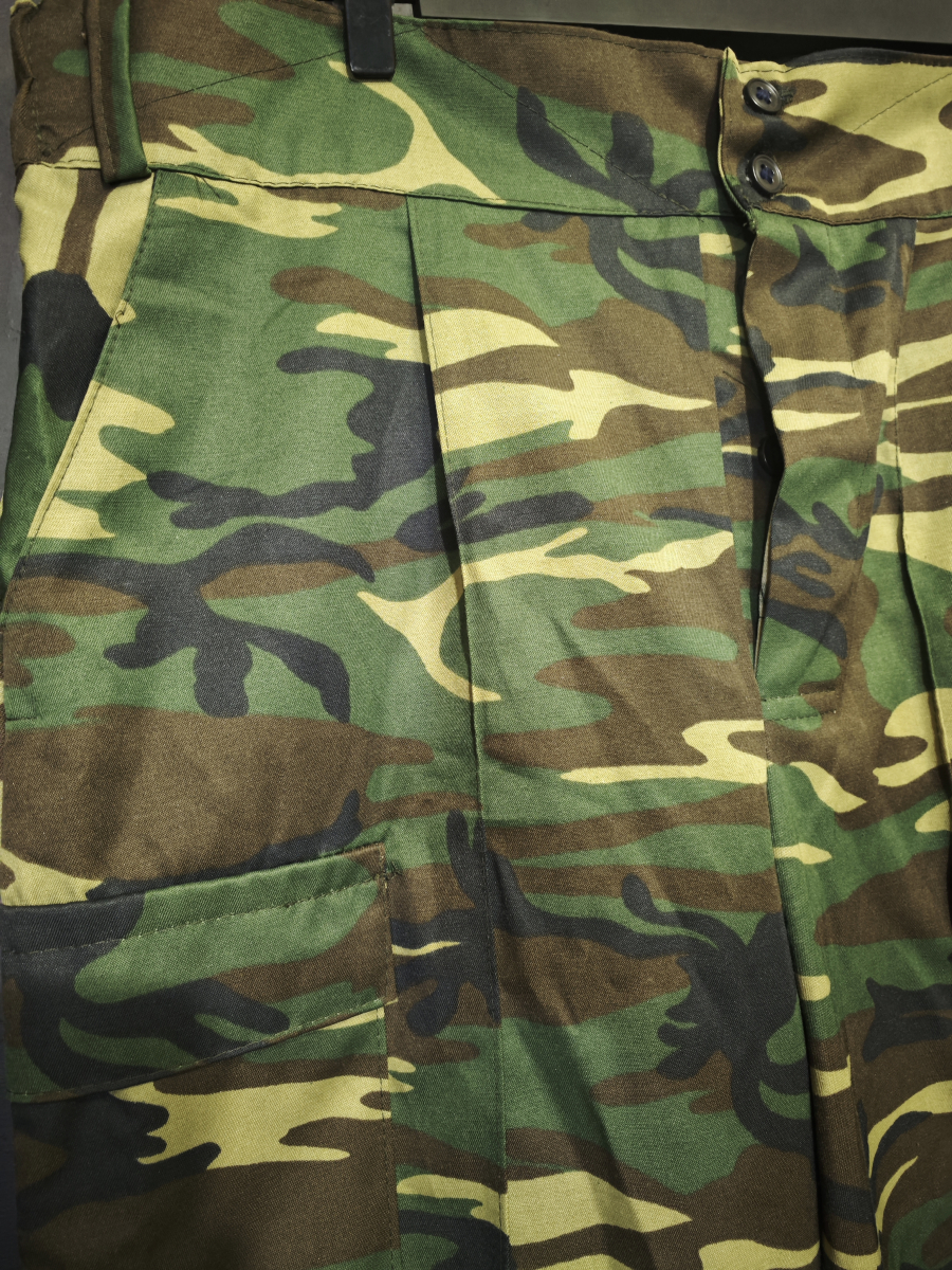 Брюки для любителей милитари стиля в лесном камуфляже вудланд с карго карманами.