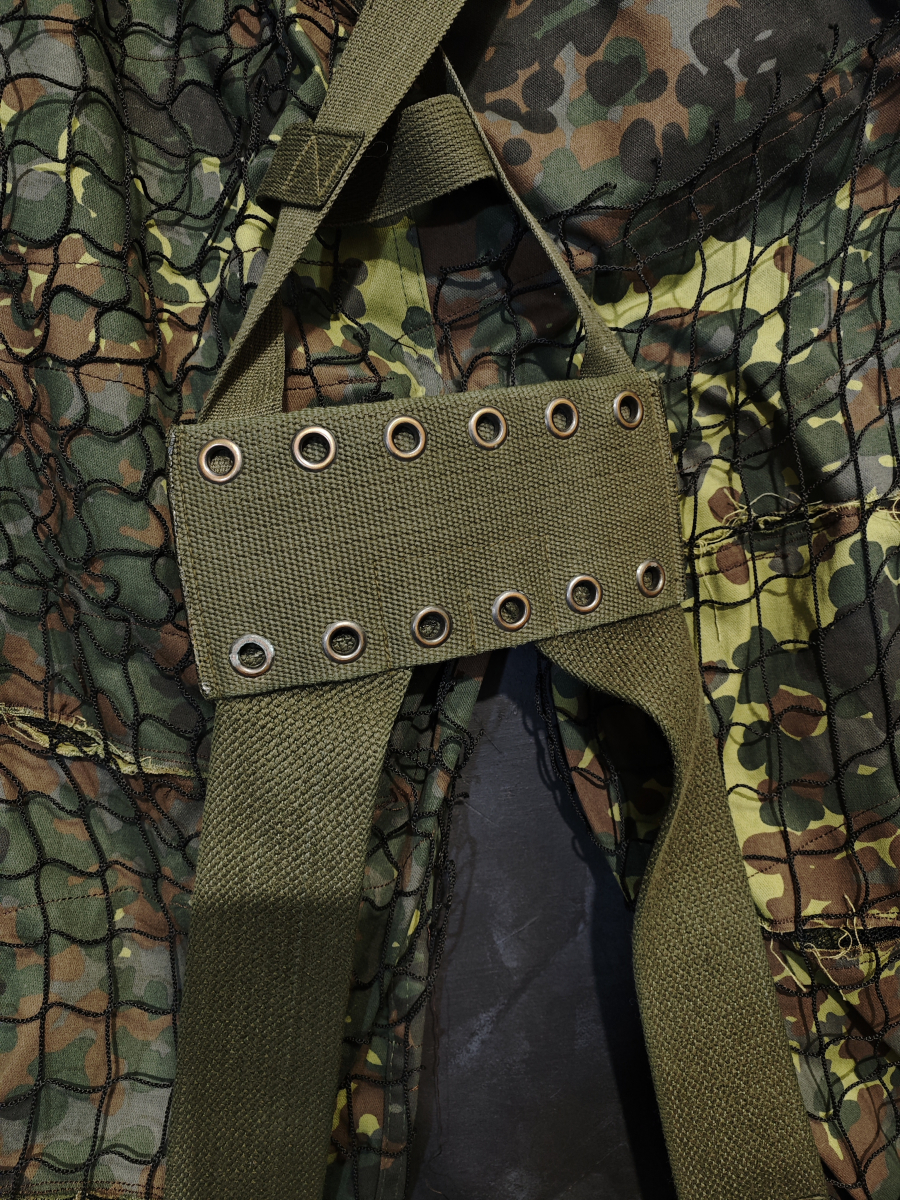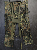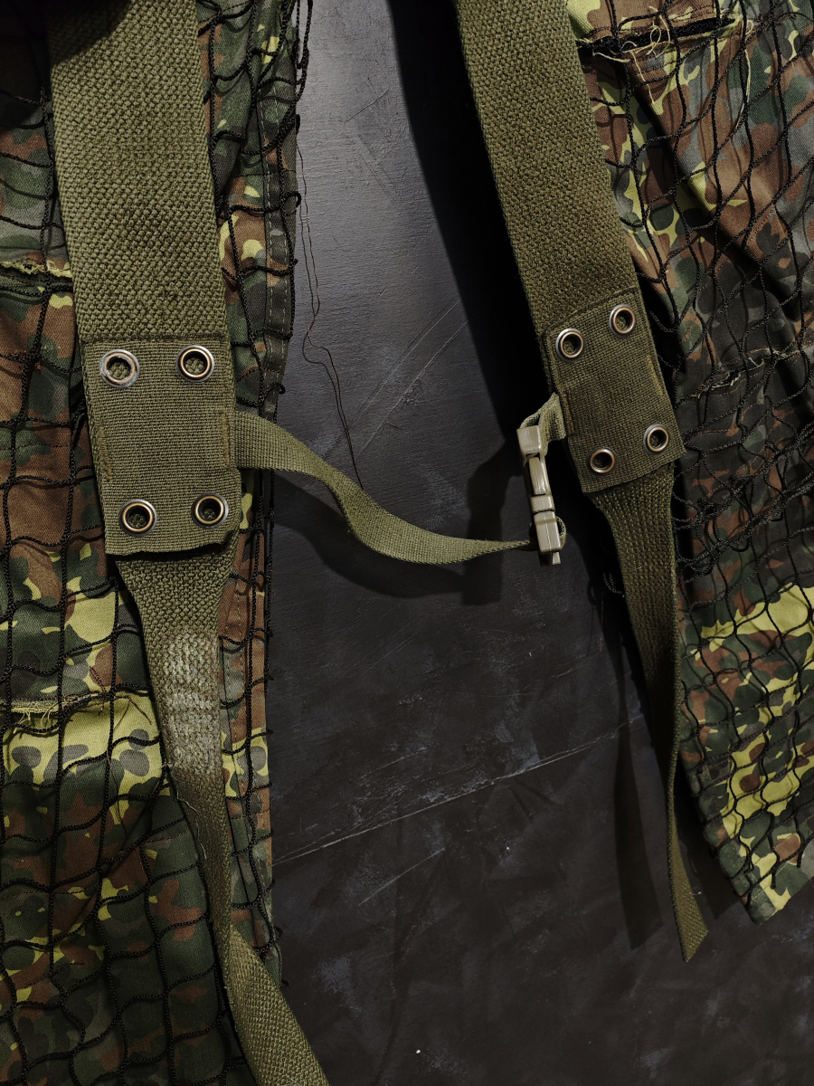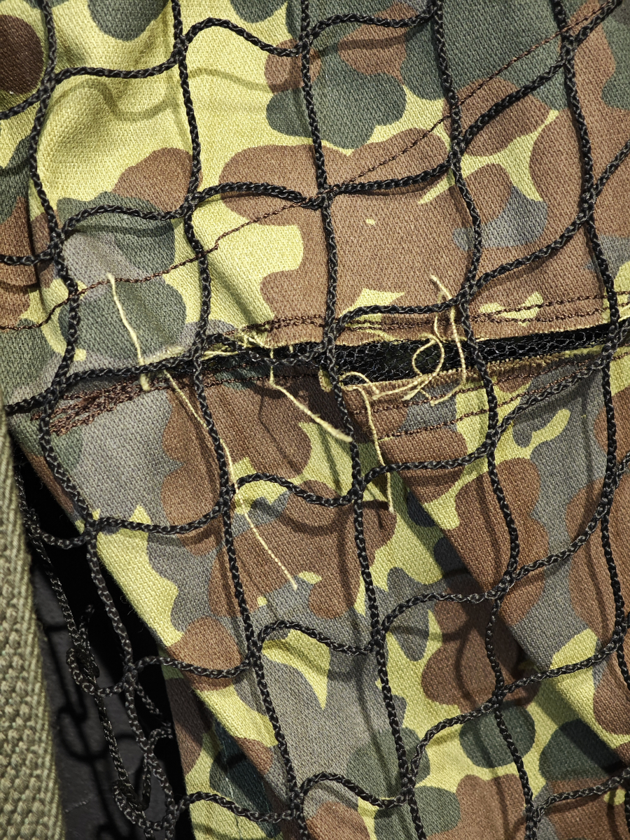 - Поверху пришита крупная сетка для крепления натурального камуфляжа из веток и листьев.