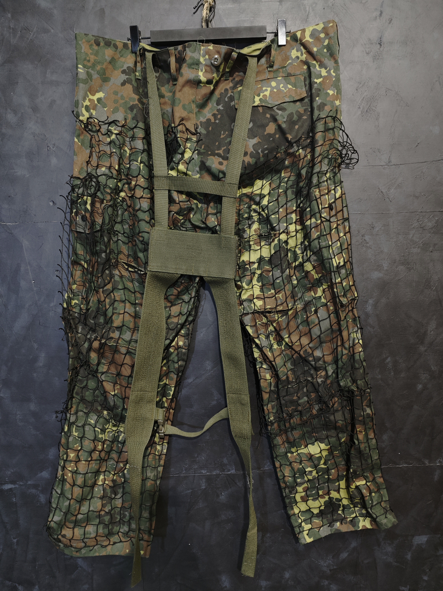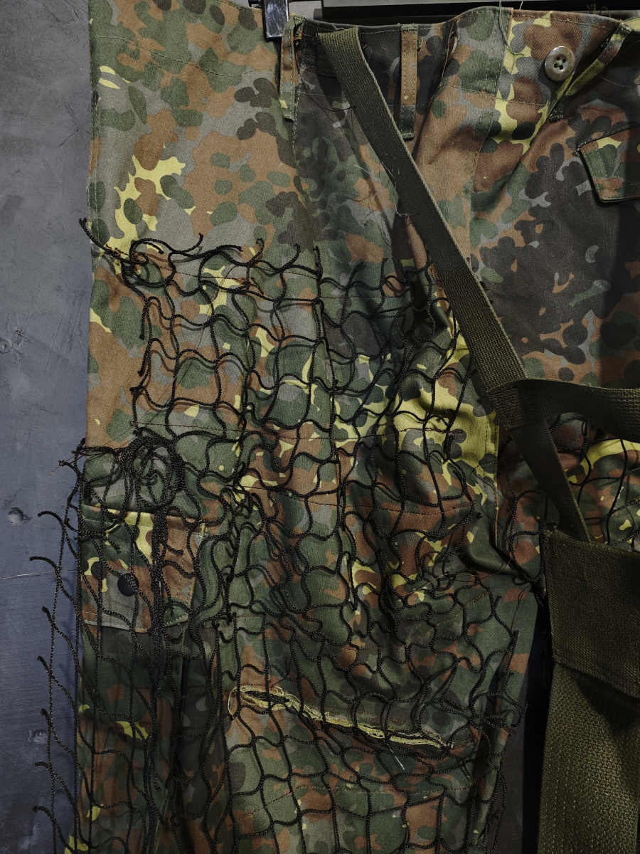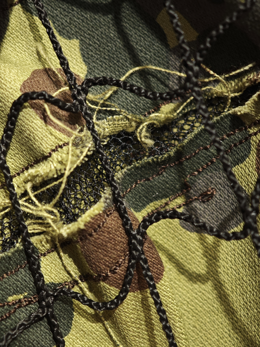 - Поверху пришита крупная сетка для крепления натурального камуфляжа из веток и листьев.