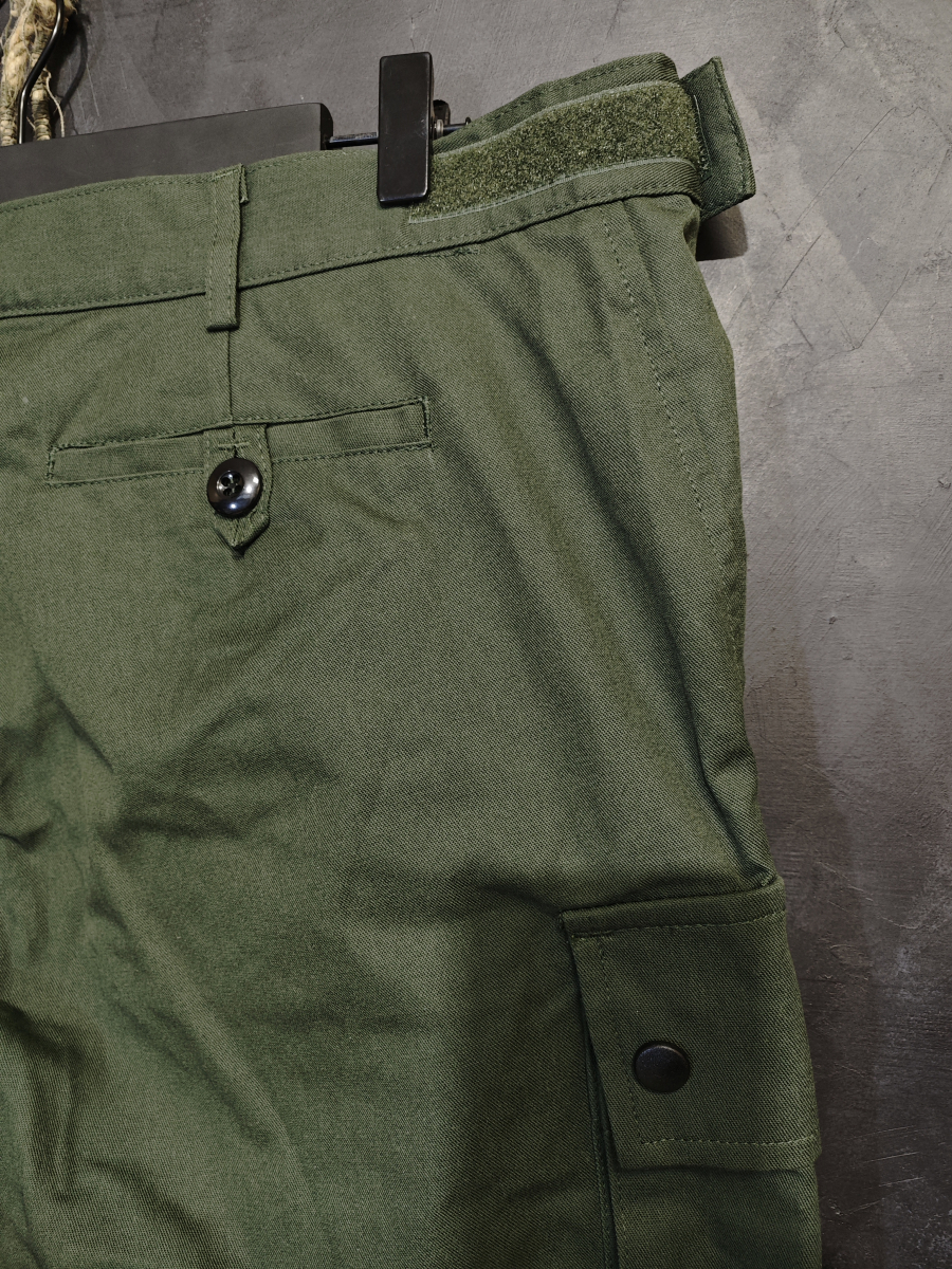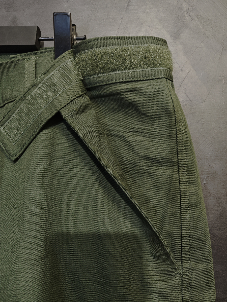 Брюки имеют характерный регулируемый пояс, аналогично полевым камуфляжным брюкам. Липучка в поясе позовляет регулировать объем на 2 размера в обе стороны.