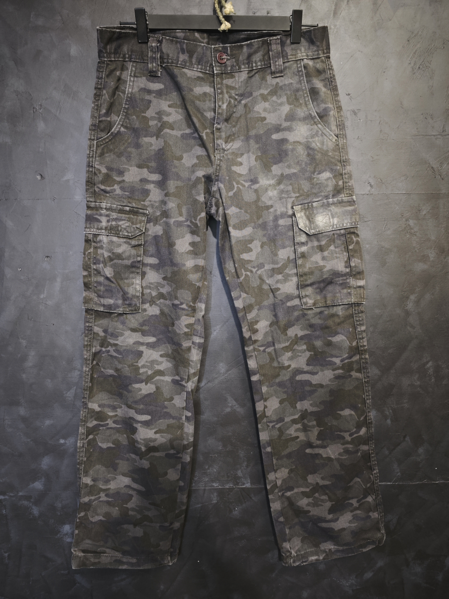 Прямые брюки из легкой смесовой ткани в расцветке черный мультикам c карго карманами.