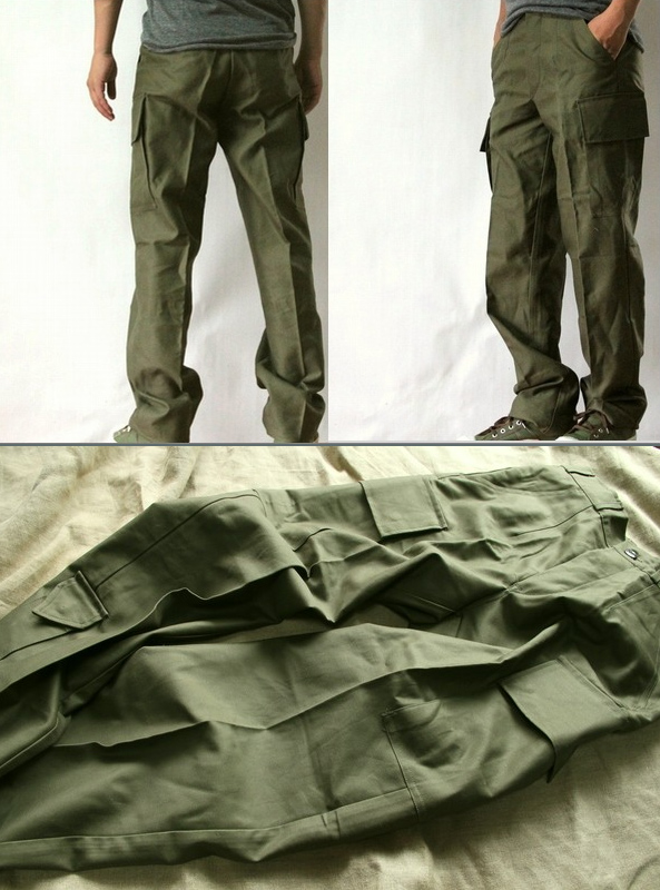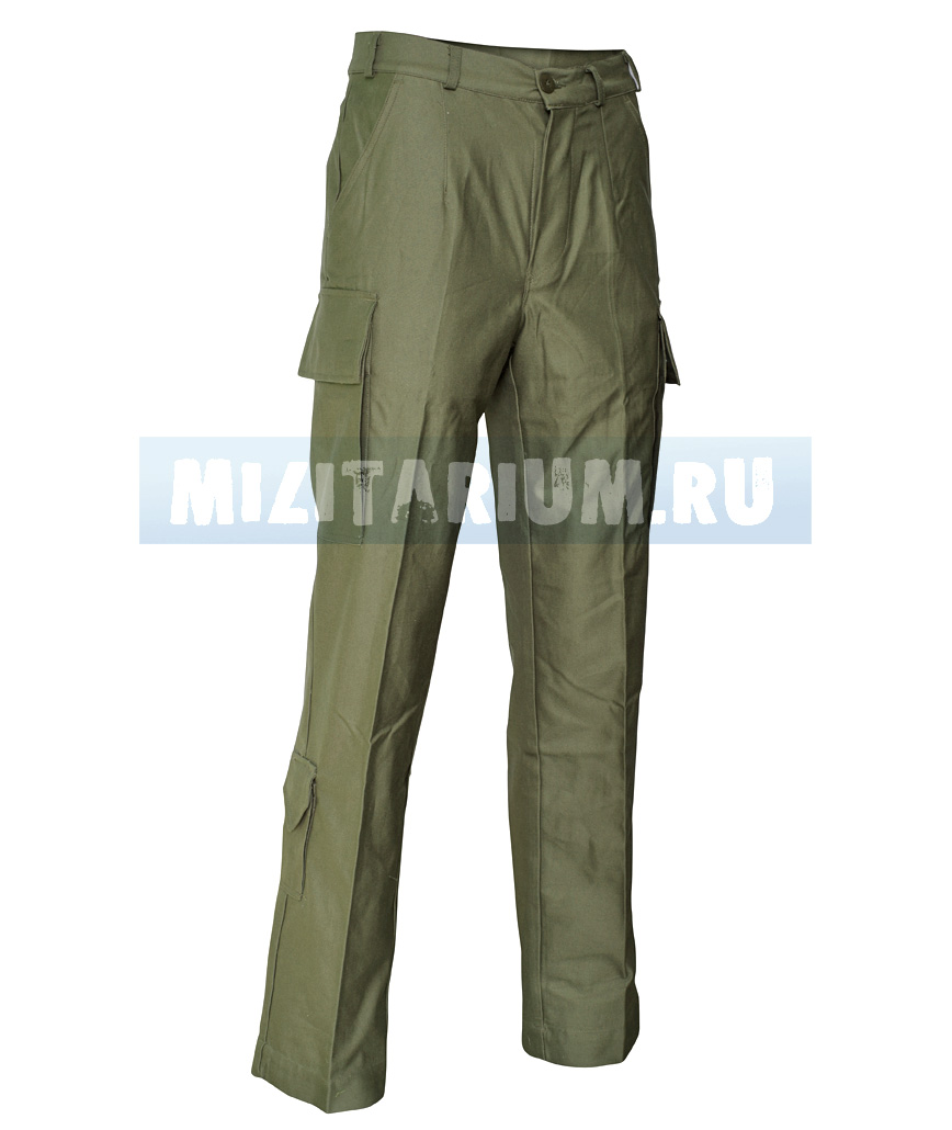 Полевые брюки в однотонном оливковом цвете изготовлены в 1970-80е года для Королевских вооруженных сил Нидерланд.