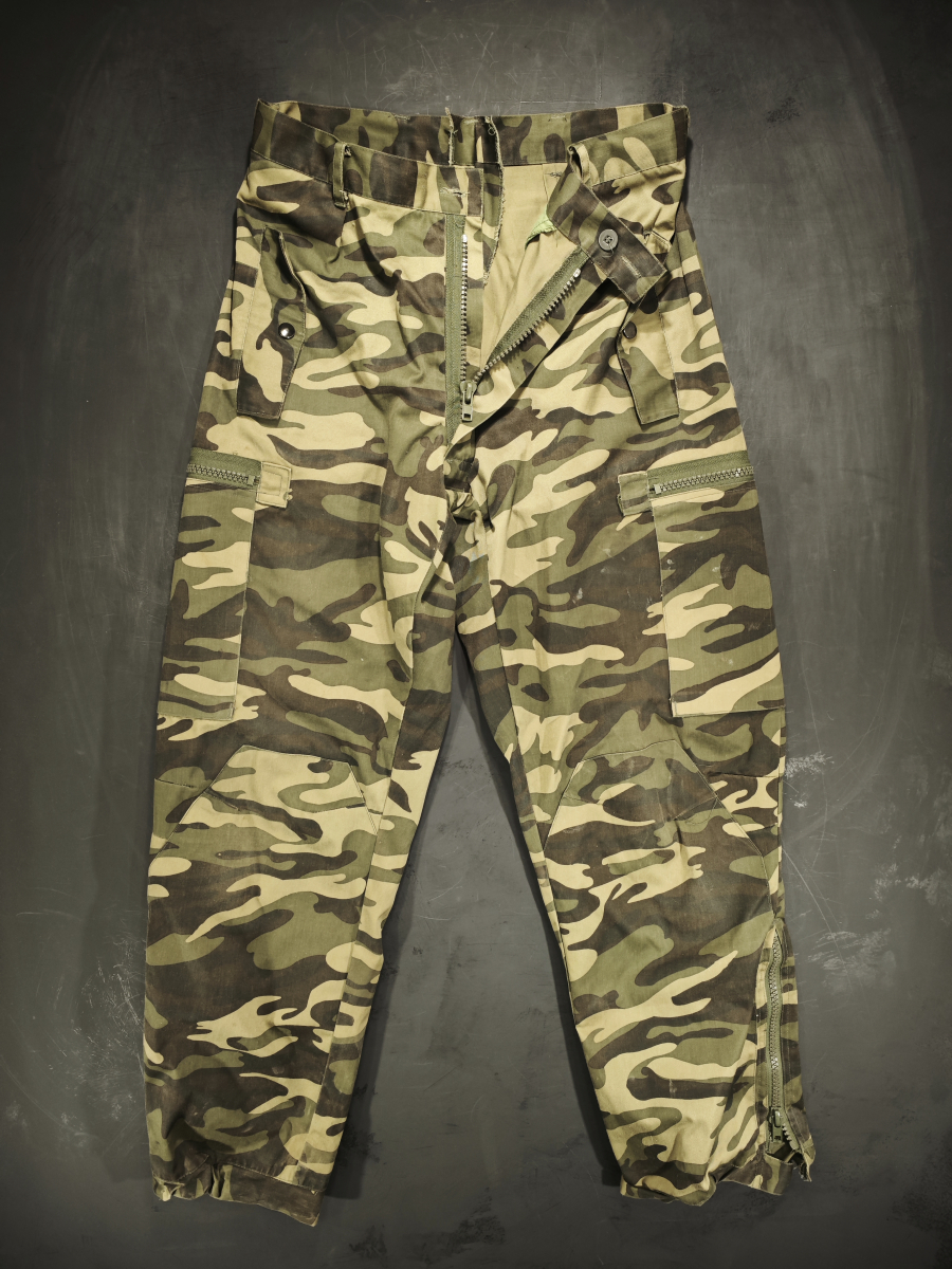 Камуфляжные брюки в стиле шведской военных полевых брюк M90 - массивные молнии, расширители по низу брючин.