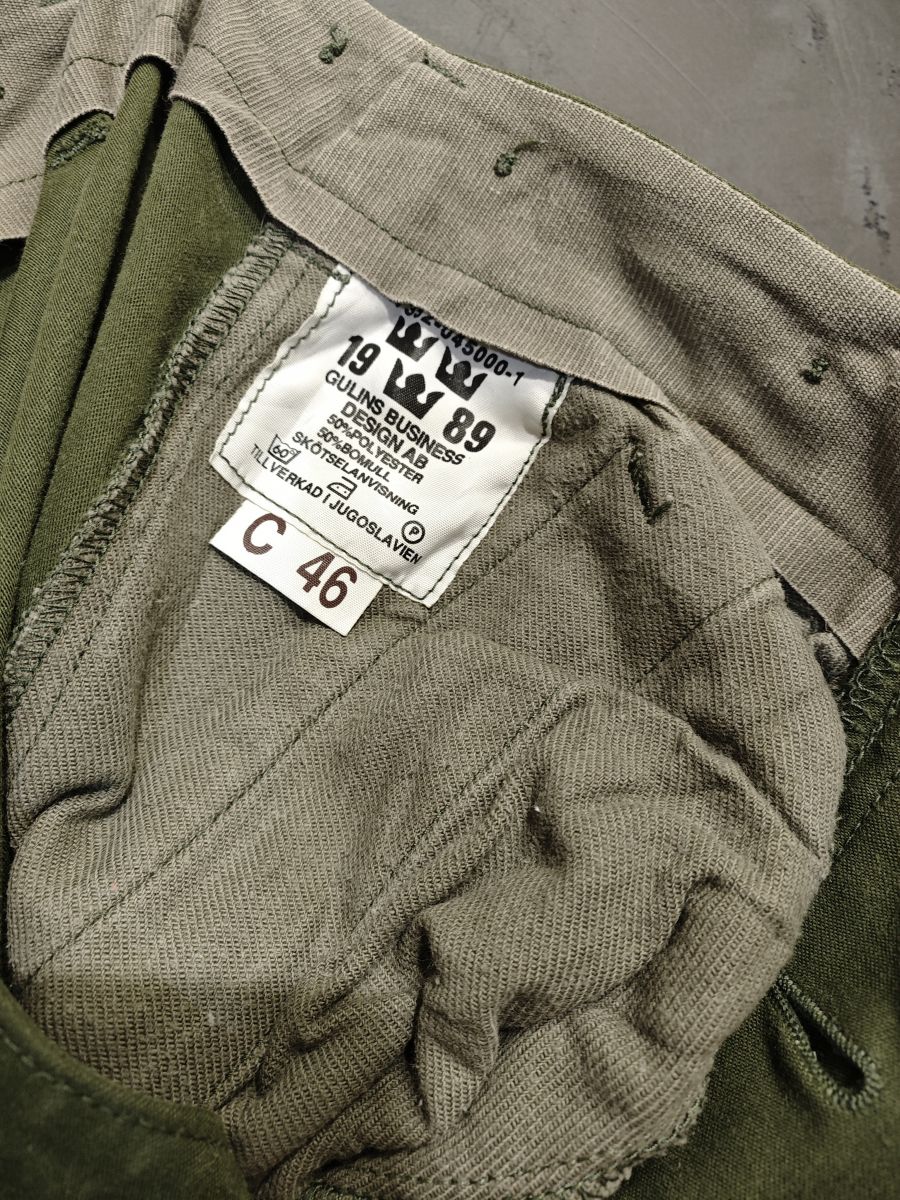 Брюки шведские полевые 1980х годов выпуска, в однотонном оливковом варианте.