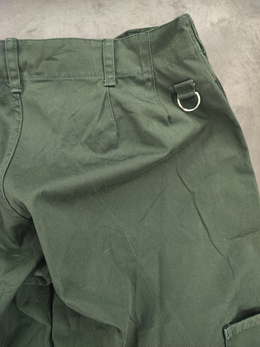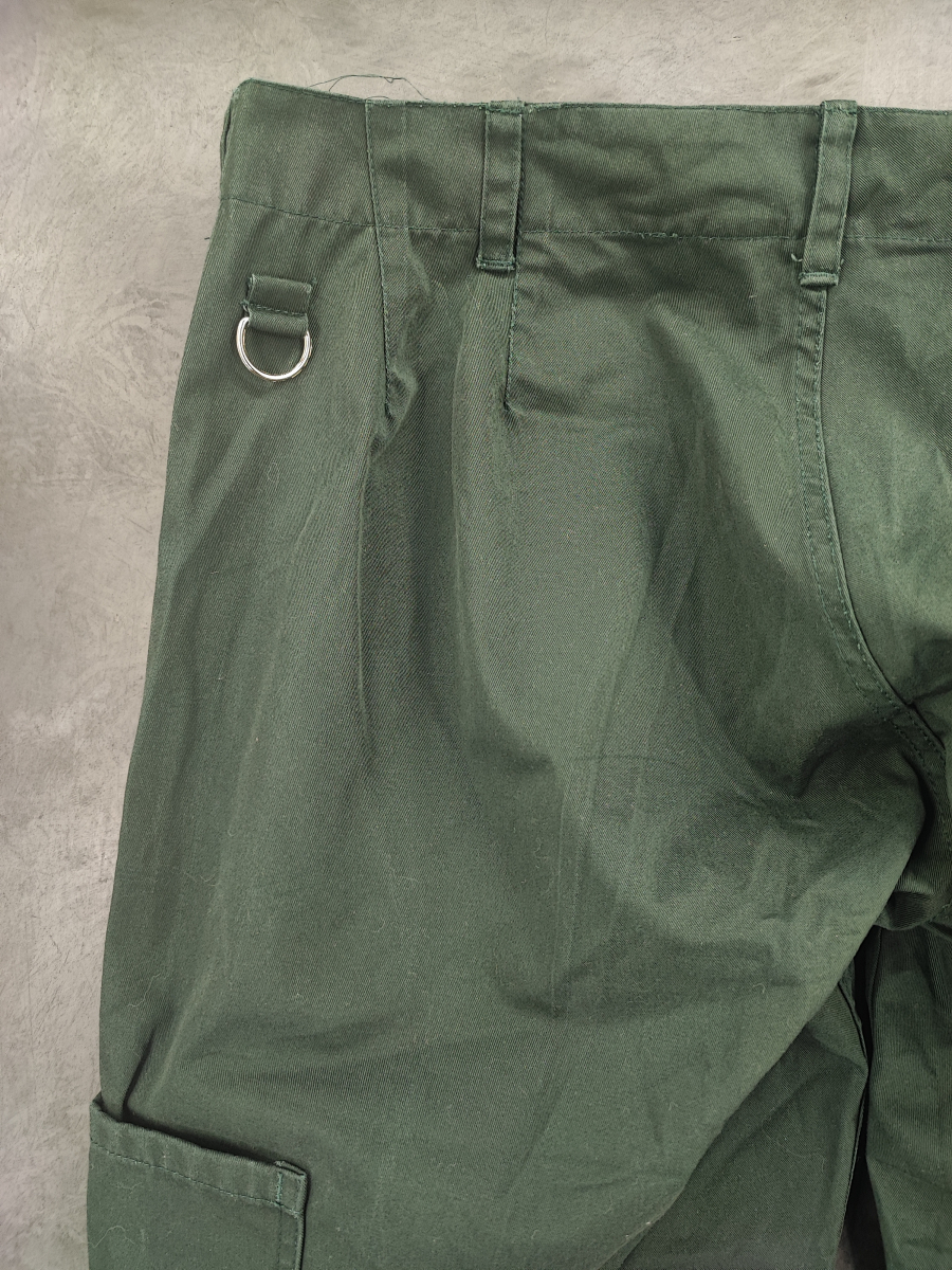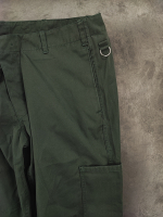 Сзади 2 металлических полукольца. Внизу пуговицы для утяжки брюк. Боковые поясные карманы имеют дополнительные фальшкарманы.