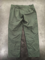 Атрибутировать эти винтажные брюки мы не смогли, уж очень они древние и не имеют специфических штампов. Однако все в них намекает на военную тематику, если быть более точным, то на техническую часть военного дела.