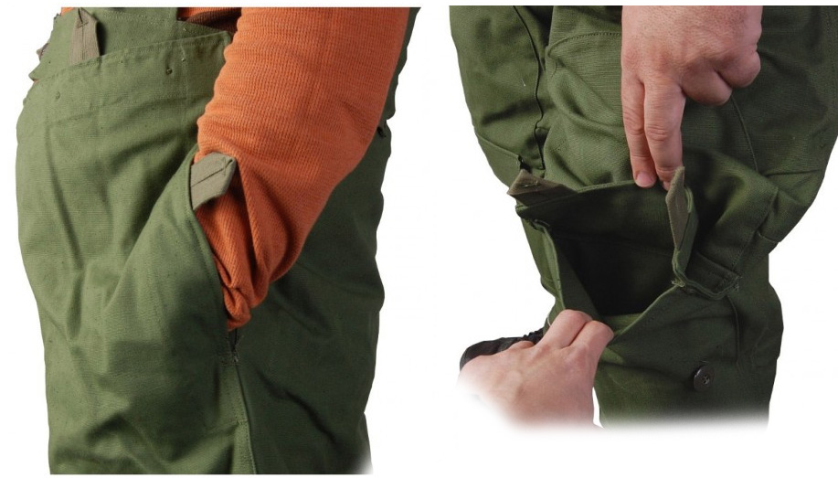 Уникальные брюки. Невероятной плотности внешний слой из толстого брезента. Форма полукомбинезона с очень высокой "спинкой" и "нагрудником". Оригинальная система застегивания. Съемный утеплитель из искусственного меха.