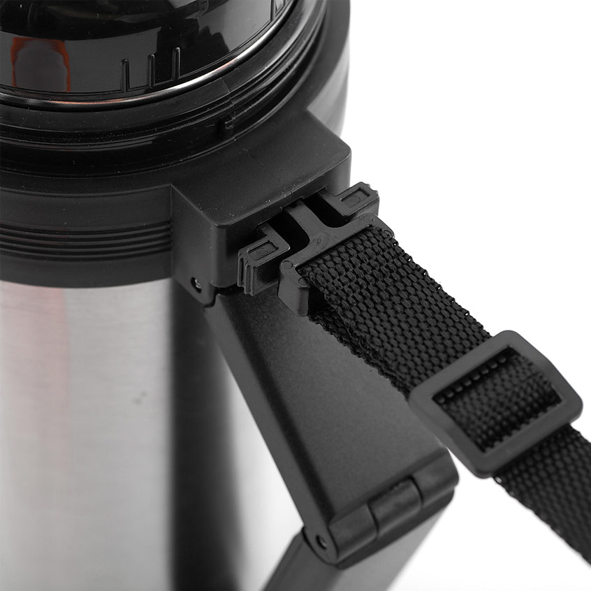 Термос для еды или напитков, с широким горлом. Для горячих и холодных блюд. Выполнен из нержавейки с вакуумными стенками. Дополнительная чашка, складывающаяся ручка, ремешок для переноски на плече.