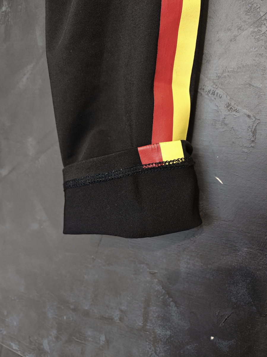 Тренировочные укороченные эластичные брюки трико с лампасами.