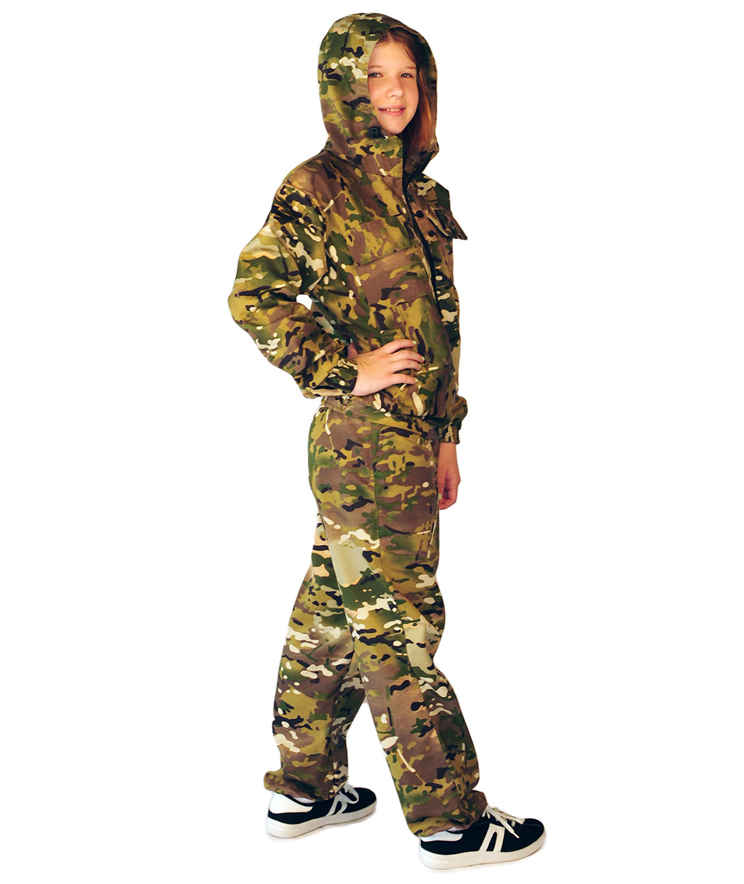 Камуфляжный костюм подходит для детских военно-патриотических игр и соревнований.