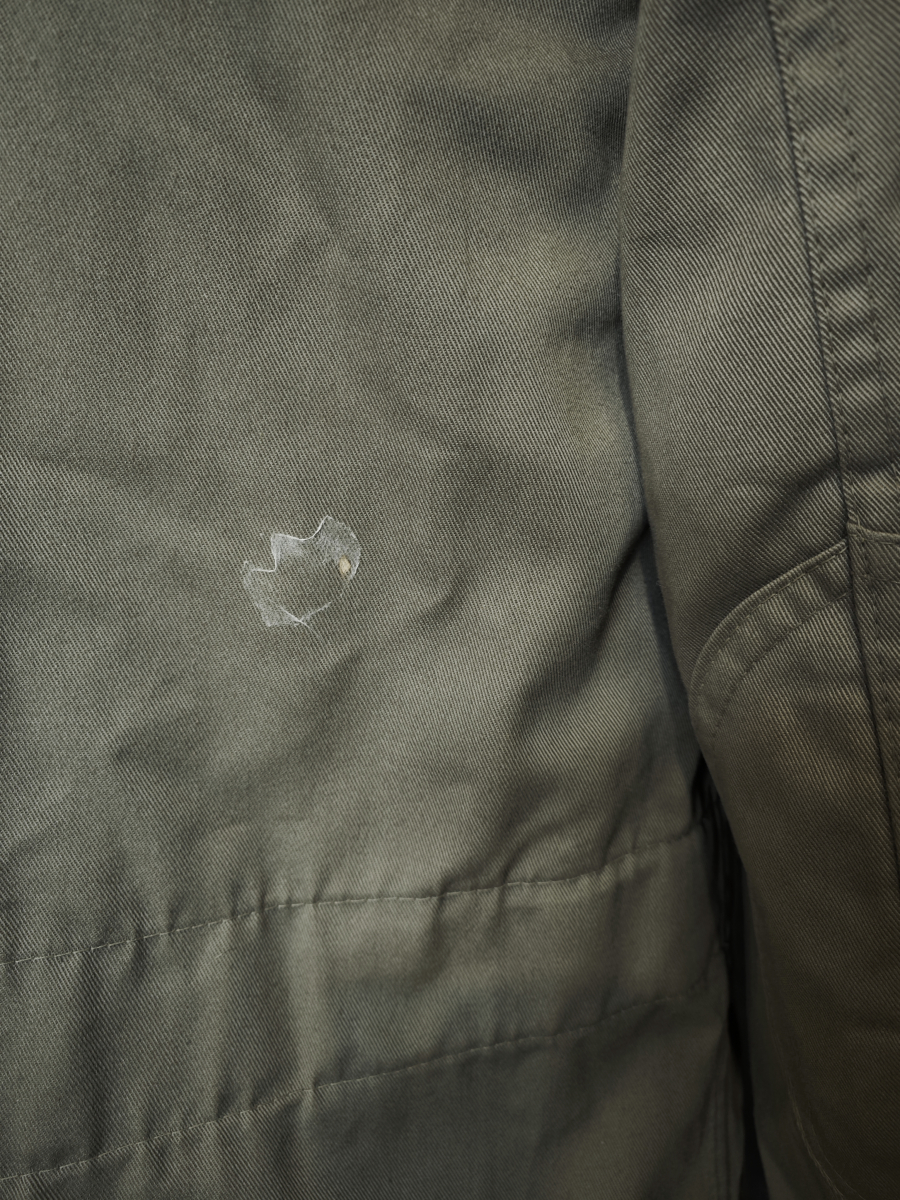 Имеет четыре накладных кармана с клапанами на лицевой стороне.