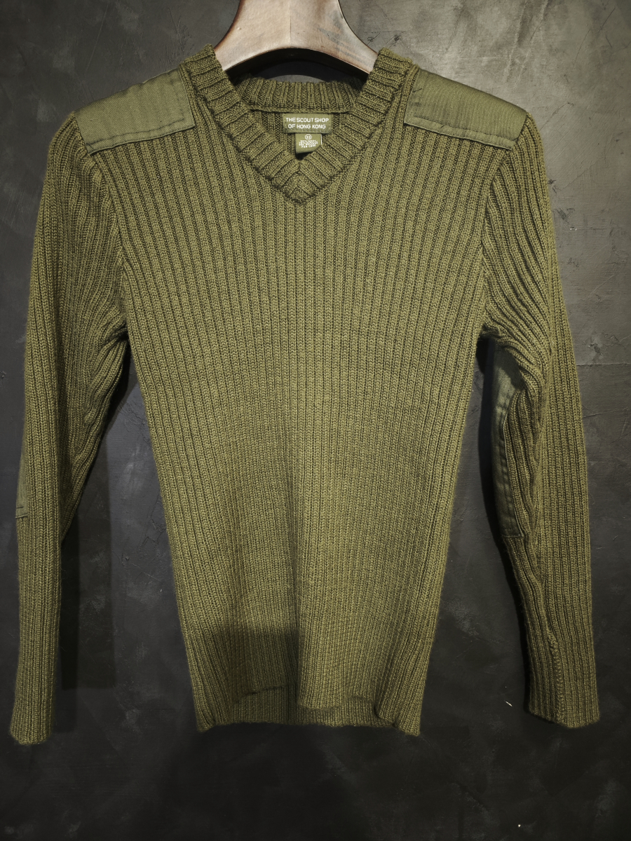Шерстяной свитер с V-образным воротом в милитари стиле.