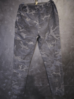 Брюки женские из эластичной ткани с резинкой на поясе с тёмным камуфляжным рисунком. подробнее