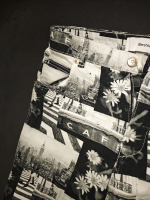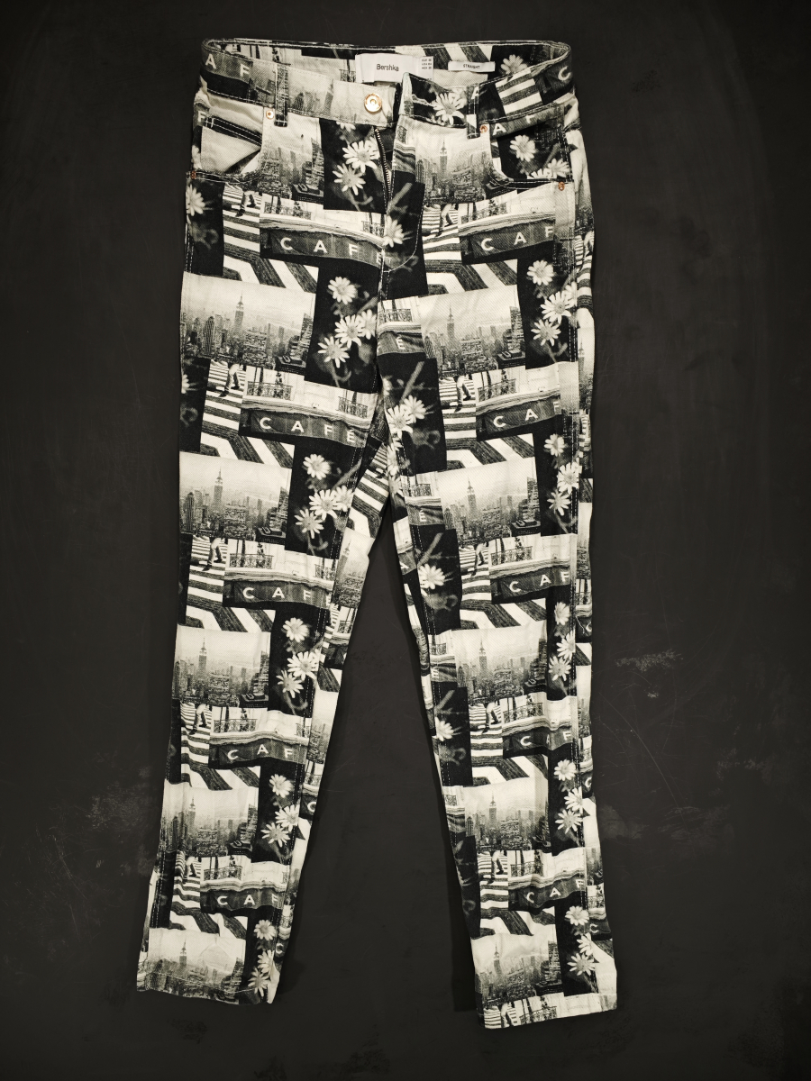 Джинсы Бершка стрейч с полным заполнением принтом на французский манер.