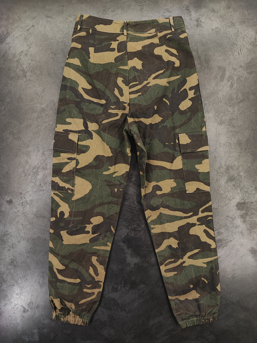 Брюки карго джоггеры женские в лесном камуфляже из легкой летней ткани.
