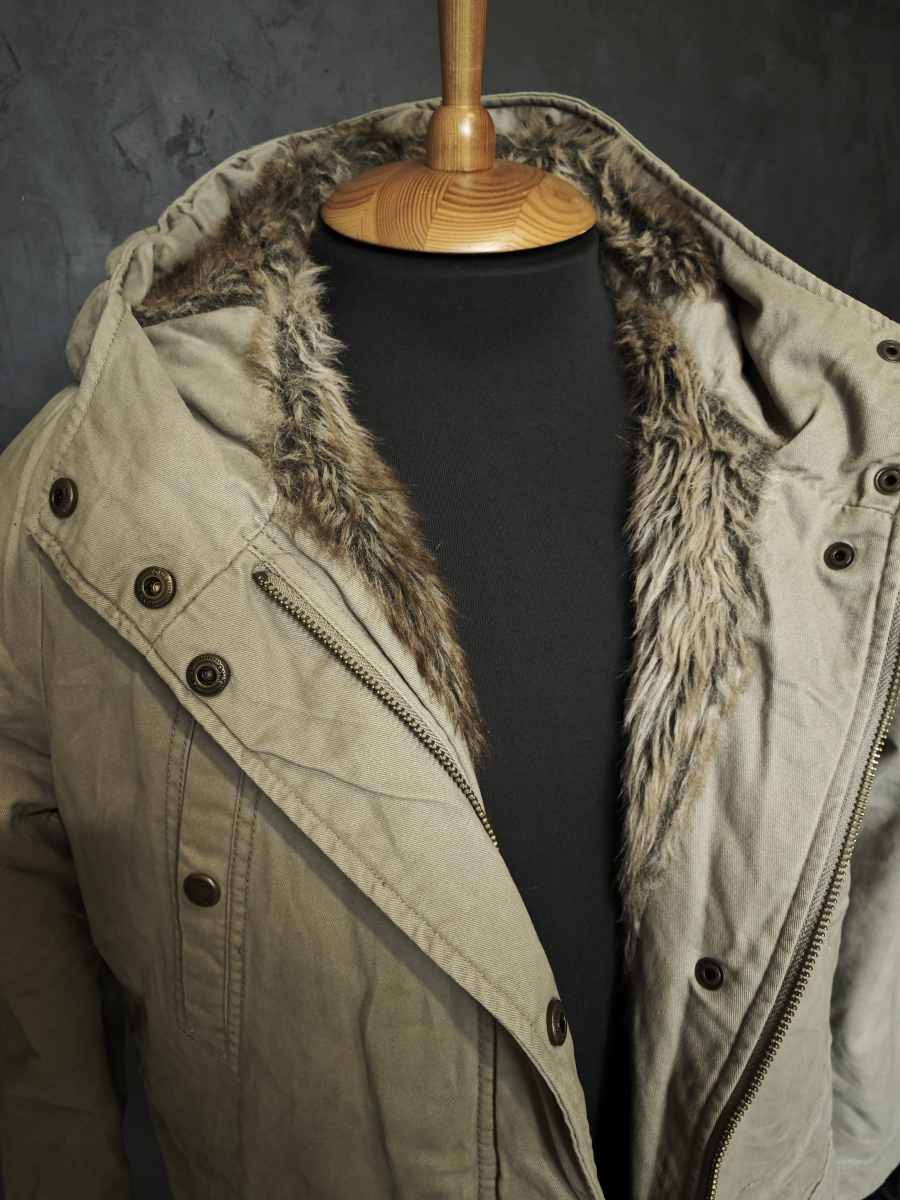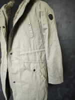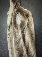 Подстежка из искусственного меха, ворс длинный. Капюшон утепленный, в рукавах утеплитель- стеганый синтепон.