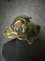 Шапка- ушанка в зеленом камуфляжном рисунке. подробнее
