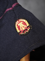 Тёмно-синяя пилотка с кокардой ГДР (DDR) и малиновым кантом — это элемент парадной униформы военизированных или гражданских организаций Восточной Германии. подробнее