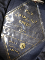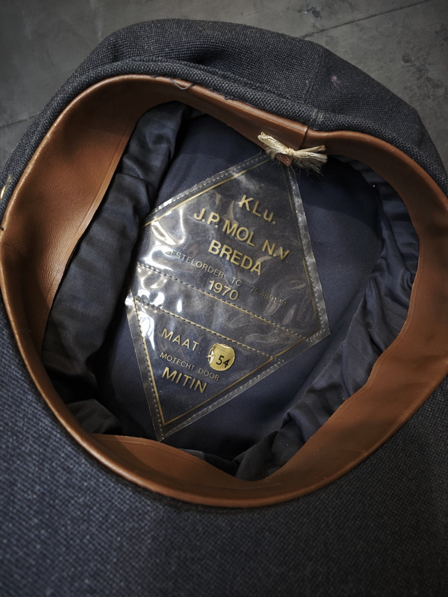 Производитель: J.P. MOL N.V. Компания J.P. MOL N.V. (основана в XIX веке) — один из ключевых поставщиков военной формы и аксессуаров для Нидерландов в XX веке. Шили фуражки, кители, шинели для армии, флота и авиации (включая KLu). Штамп "N.V." (Naamloze Vennootschap) указывает на статус акционерного общества.