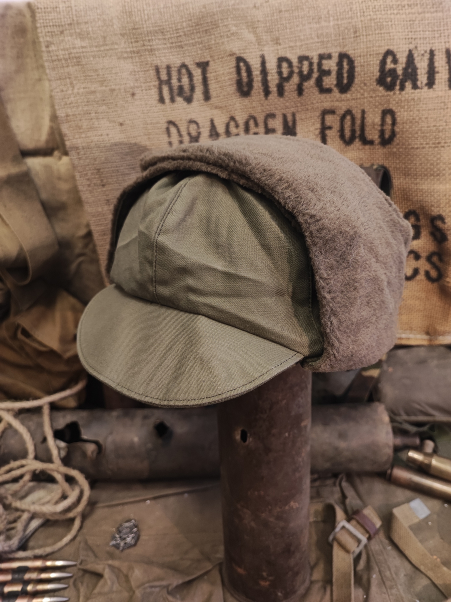 Голландская зимняя шапка-ушанка в оливковом цвете.