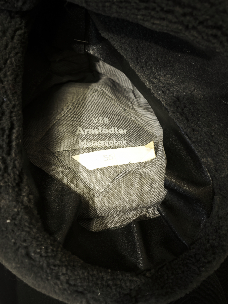 Зимняя шапка ушанка с зеленым верхом и серым мехом Национальной народной армии Германской Демократической Республики.