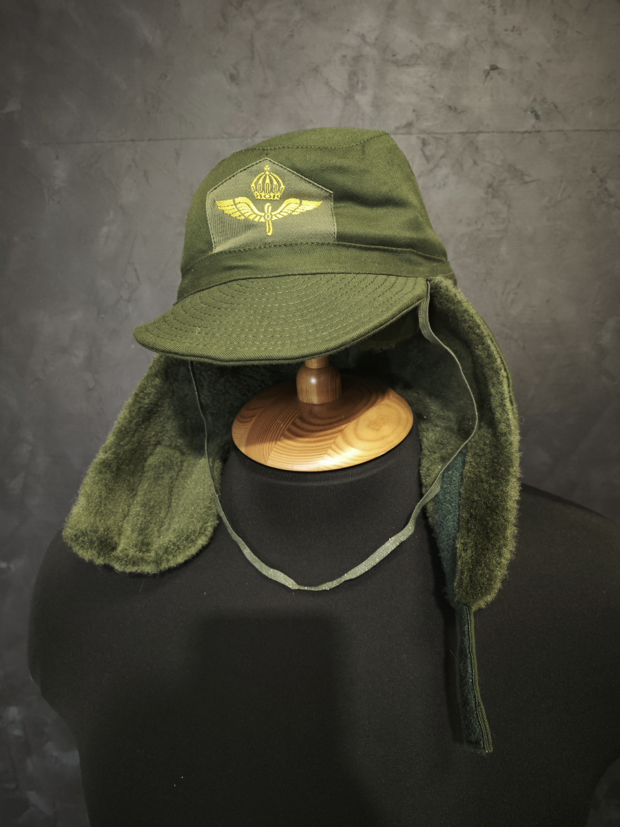 Эта шапка — часть зимнего обмундирования Шведских военно-воздушных сил (Flygvapnet), введённая в 1959 году. Она использовалась как стандартный головной убор в холодное время года и отличается узнаваемым дизайном с кокардой в виде короны, пропеллера и крыльев.