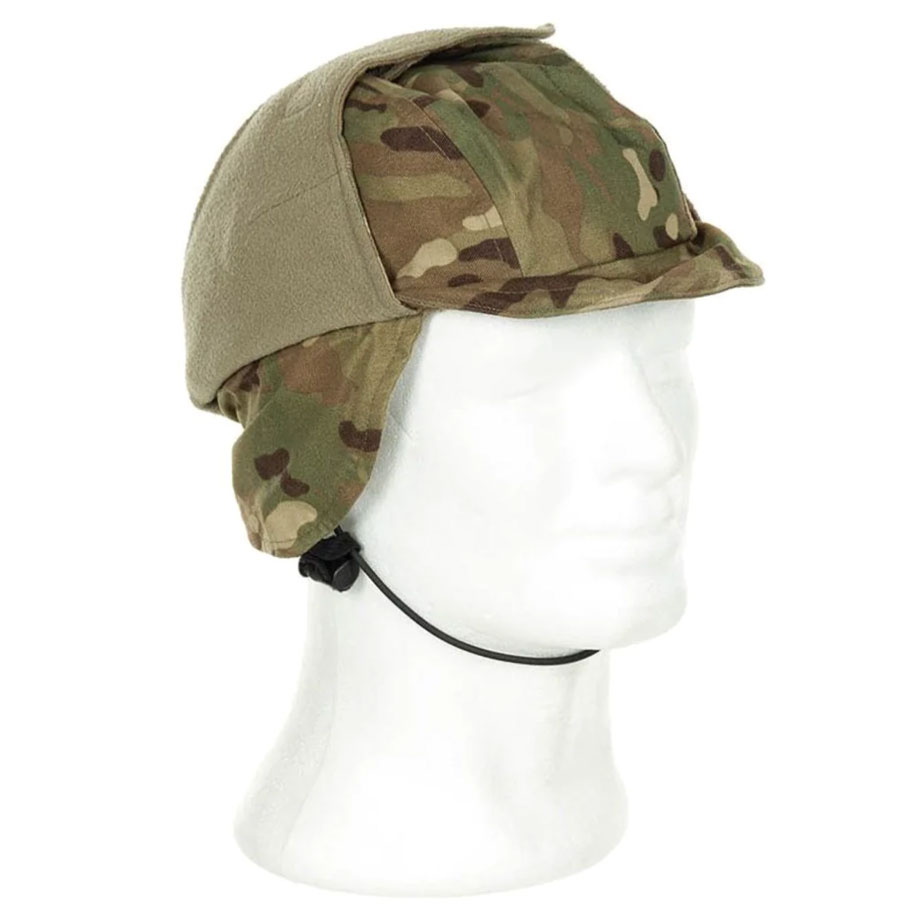 Водонепроницаемая (мембрана) шапка британской армии в камуфляже MTP для холодной погоды. Имеет удобную флисовую подкладку и откидные клапаны для ушей и подбородка. Имеется регулируемый эластичный шнурок на подбородке, который предотвращает сдувание кепки с головы при сильном ветре. Обратите внимание: флисовая подкладка бывает черного или светло-оливкового цвета.
