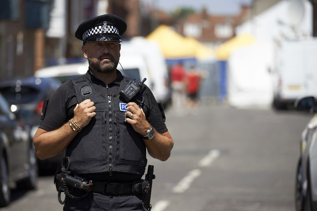 Британский головной убор полицейских - фуражка с твердым козырьком (peaked cap).
