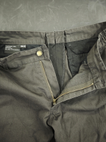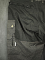 Брюки из плотного смесового материала, карманы закрываются на кнопки и молнии.