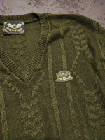 Свитер немецкий винтажный для охотников, с V-образным воротом в оливковом цвете.