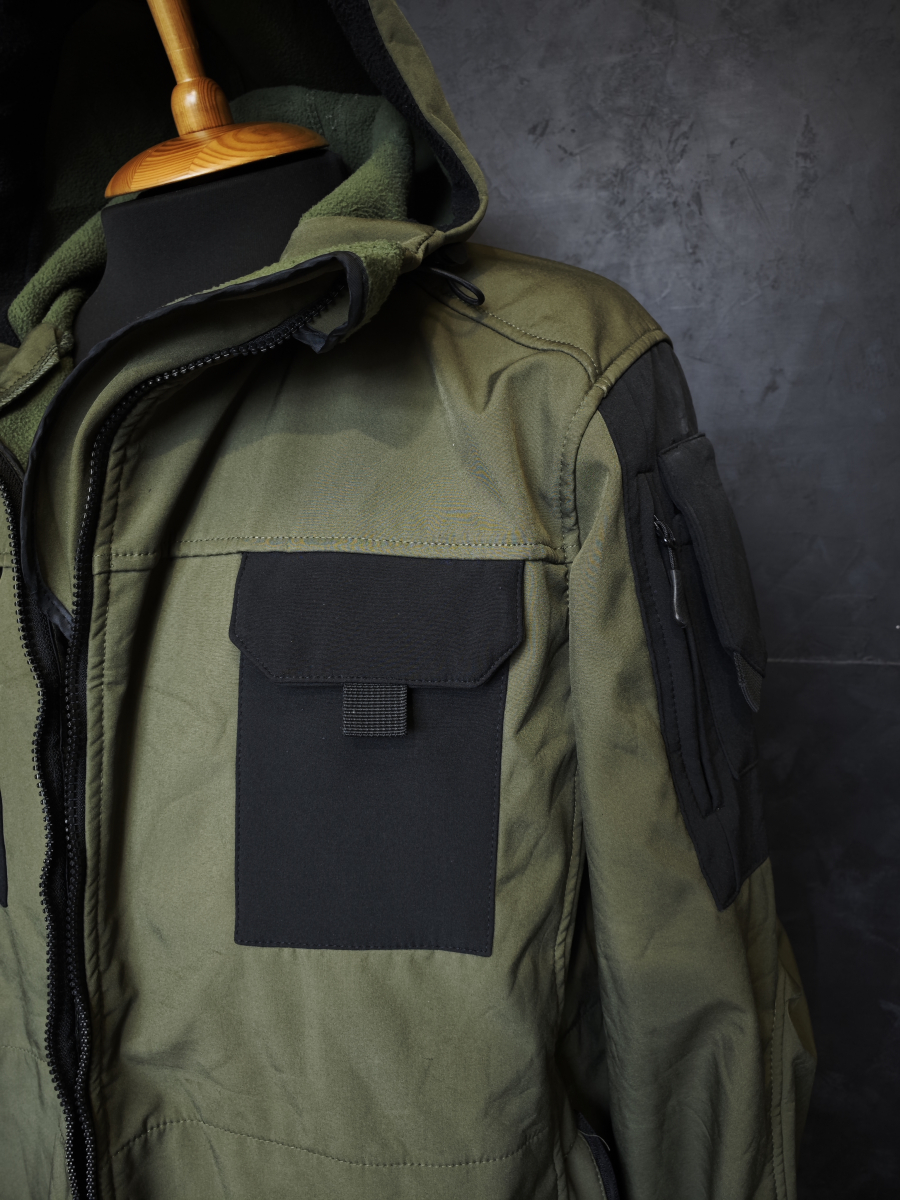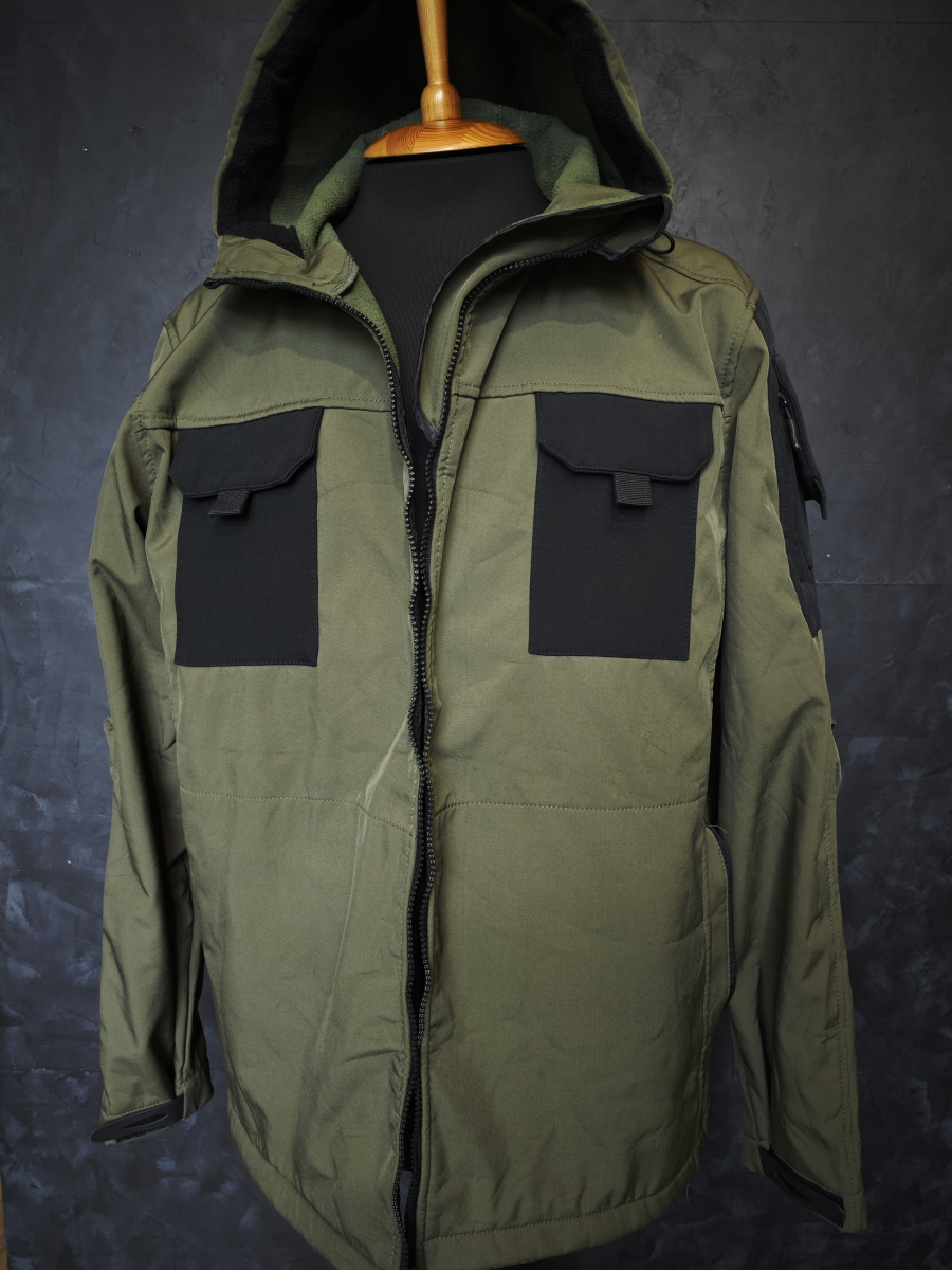 Утепленная softshell - флисовая куртка с капюшоном.