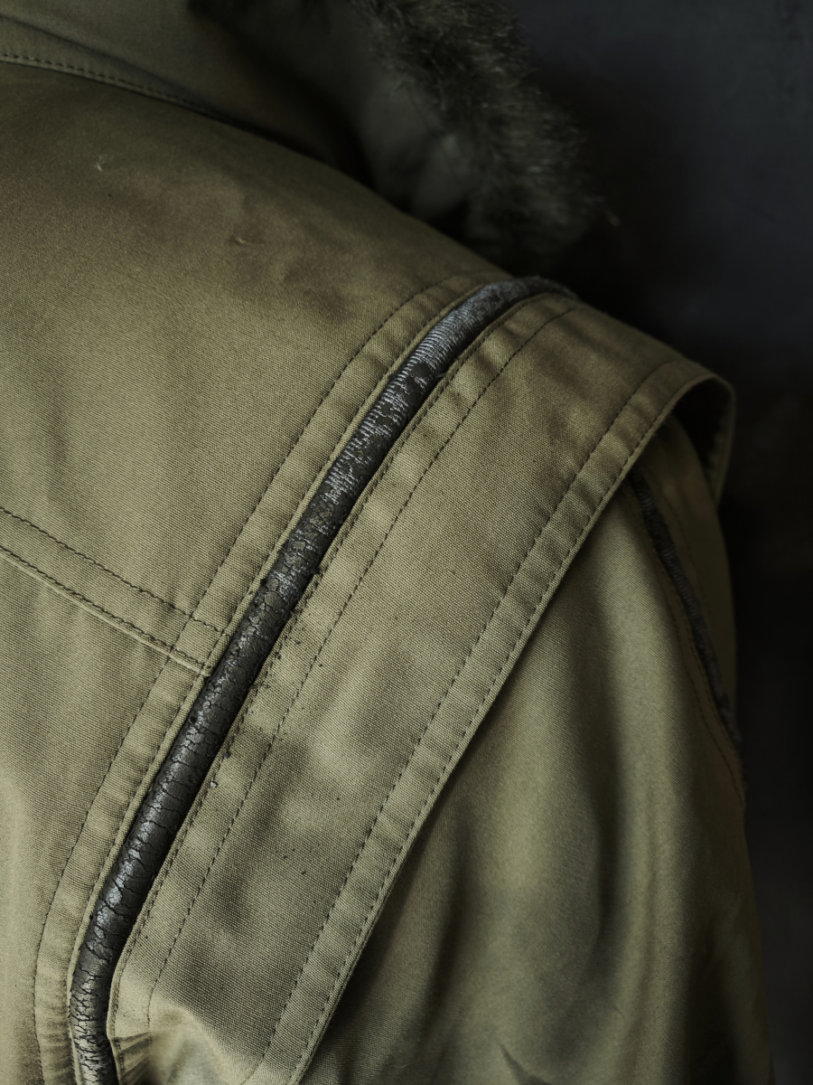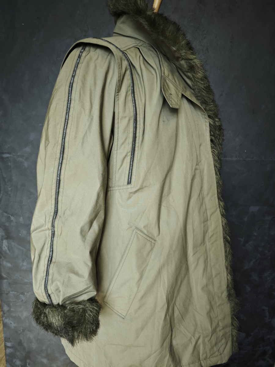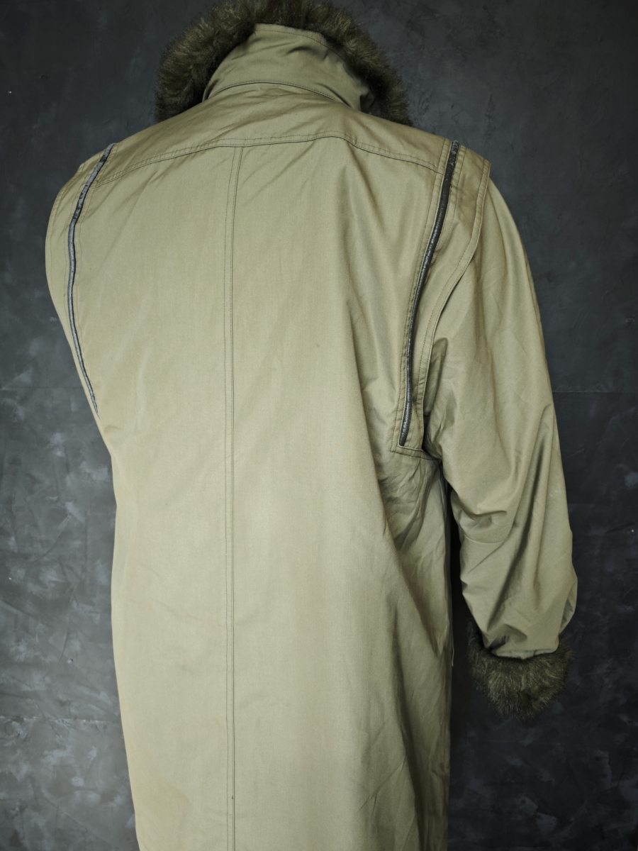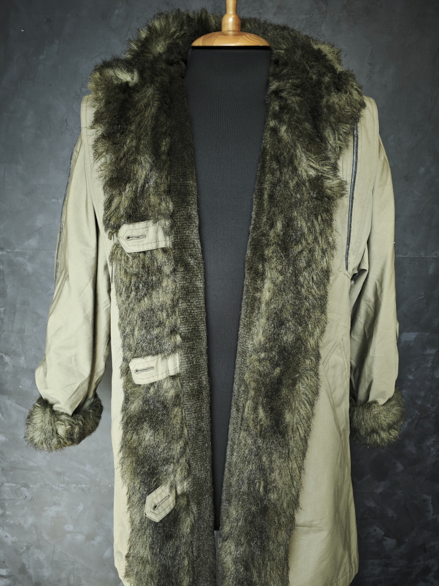 Искусственных мех хорошего качества, в рукавах утеплитель стеганый ситепон.