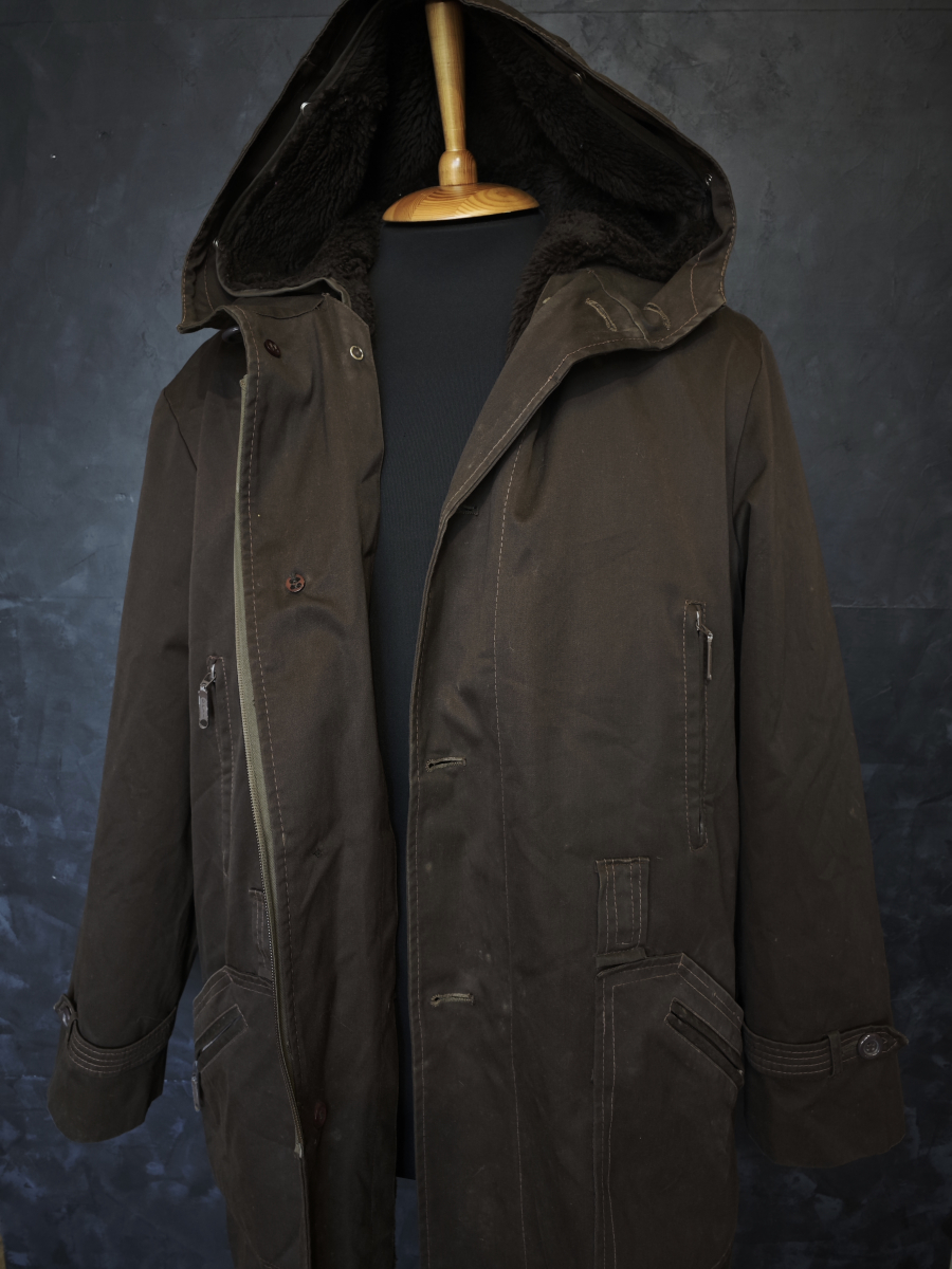 Винтажная парка (удлиненная куртка) с теплой подстежкой благородного темно-коричневого цвета.