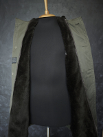 Меховая подстежка пристегивается на молнию. Утеплитель в рукавах не съемный- стеганый синтепон.
